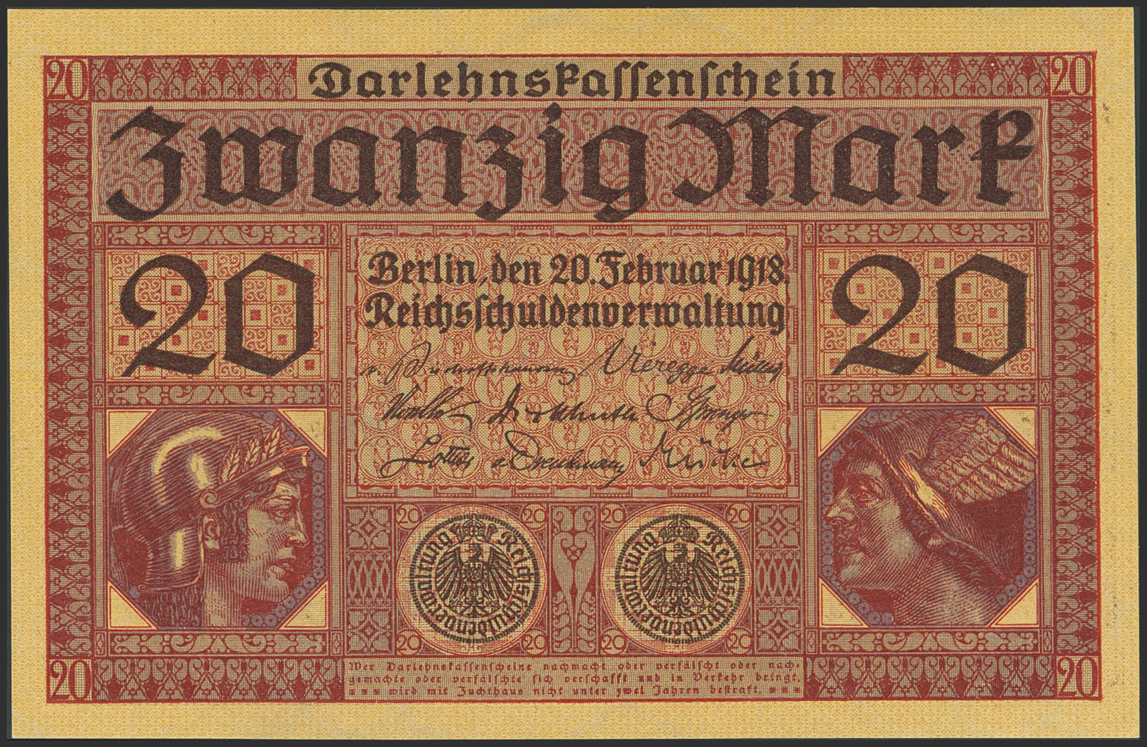 English GERMANY. 20 Mark. 1918. (Pick: 57). Uncirculated.