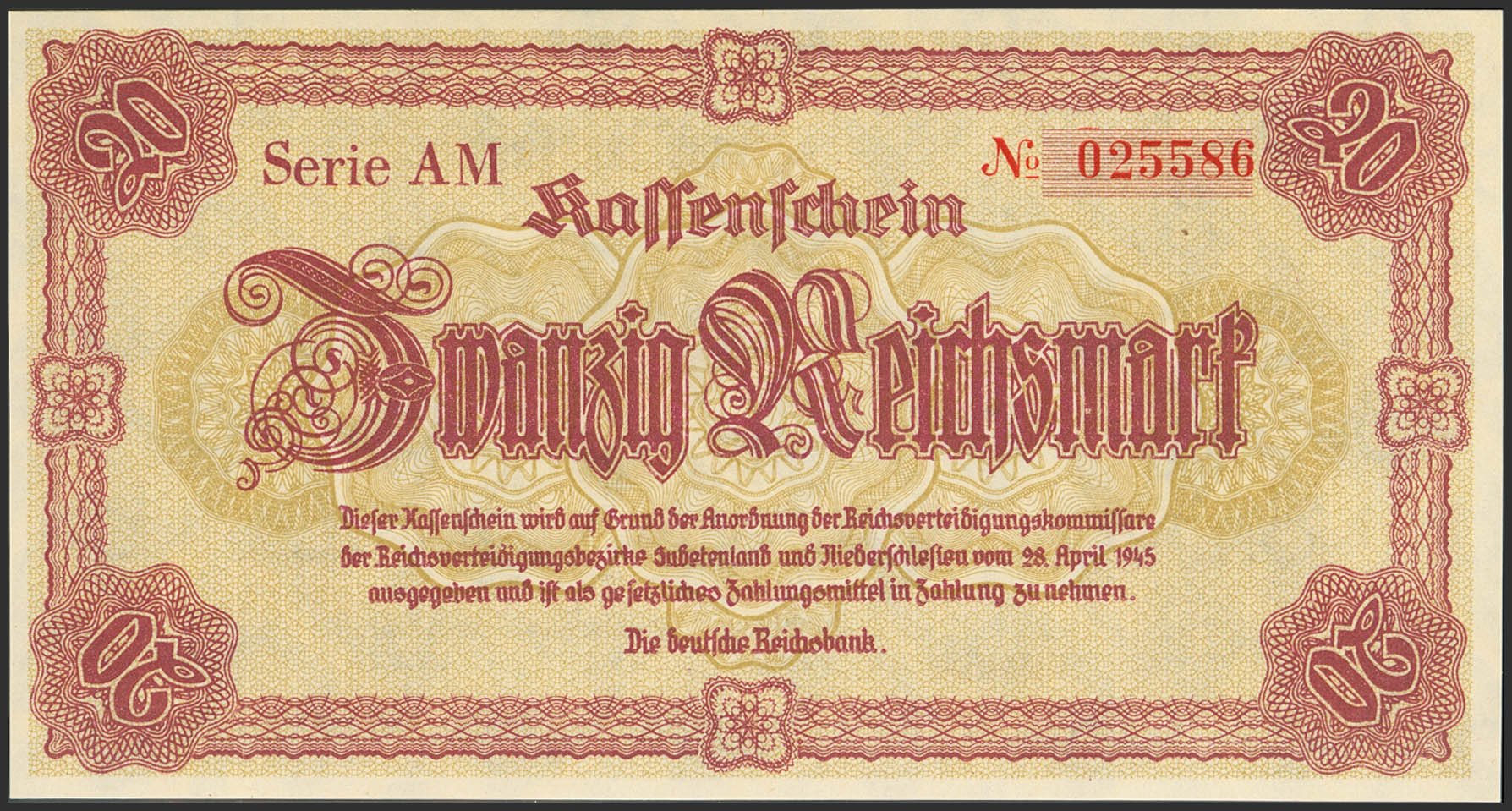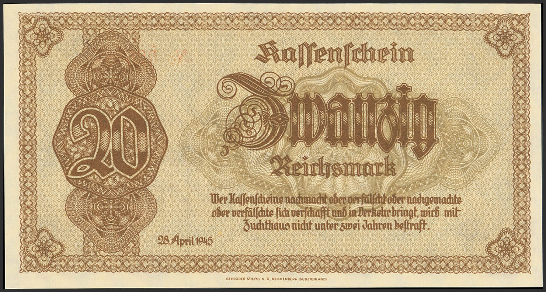 English GERMANY. 20 Mark. 1945. (Pick: 187). Uncirculated.