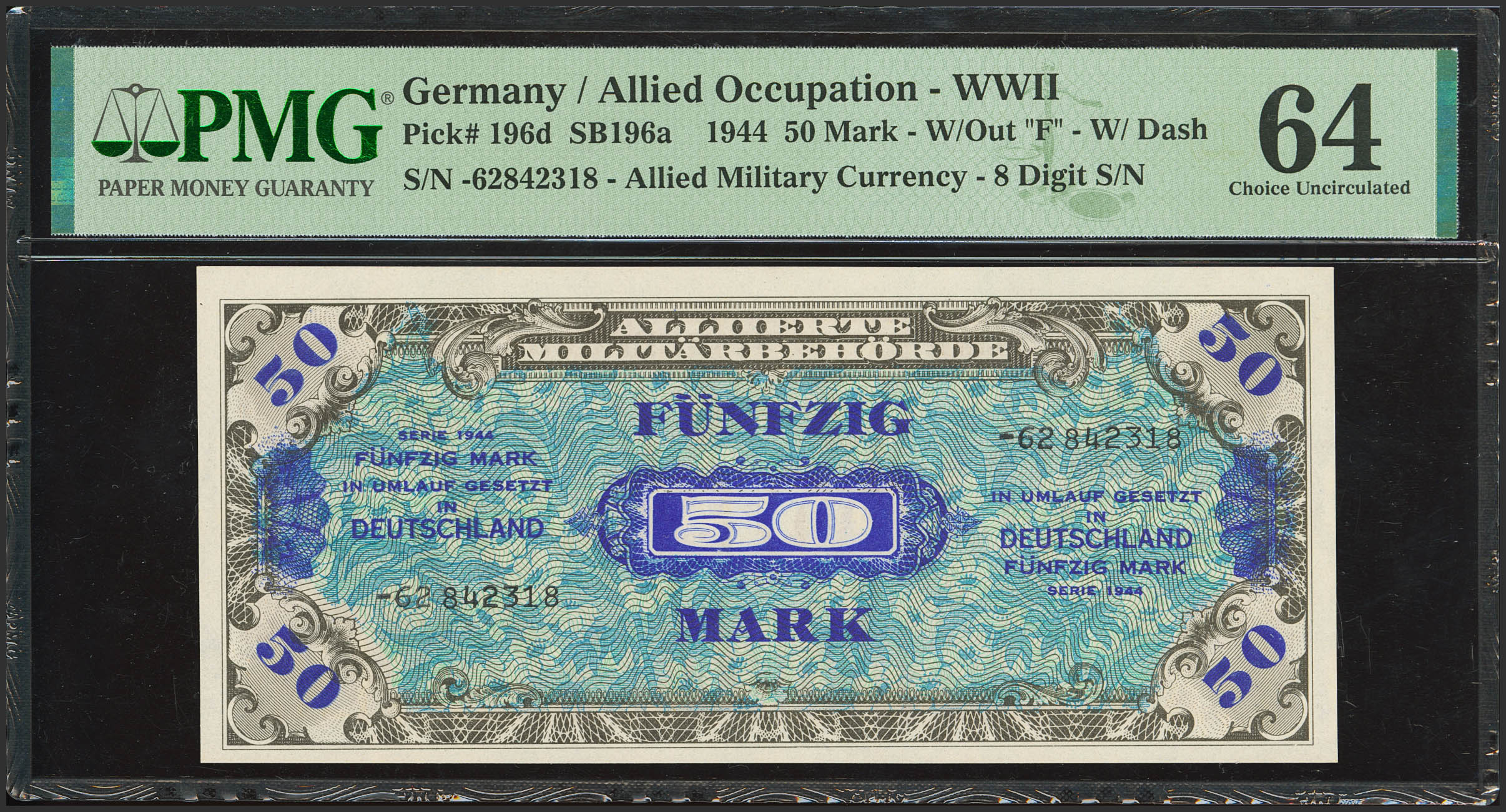 GERMANY. 50 Mark. Allied occupation WWII. 1944. (Pick: 196d). PMG64 (annotation).