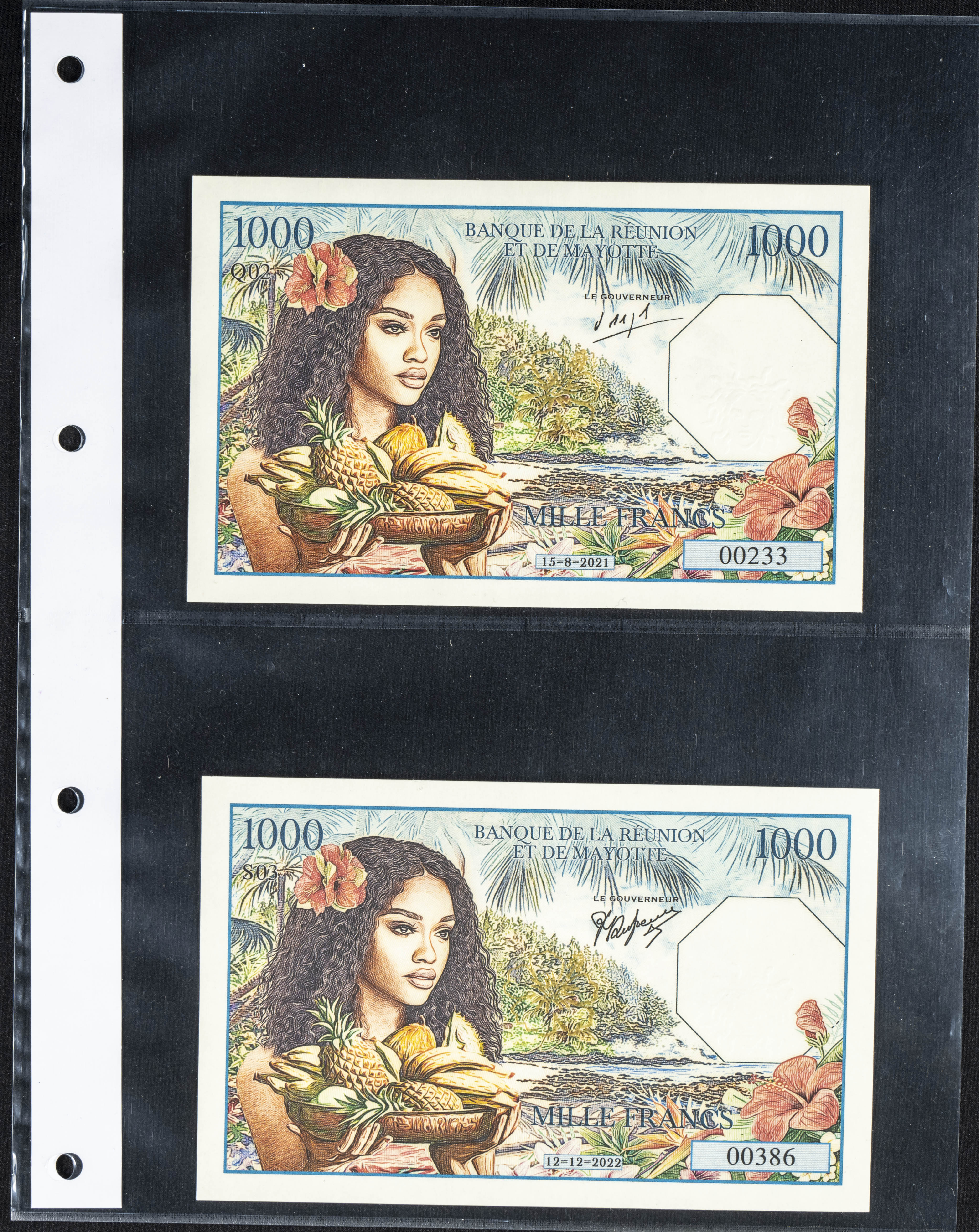 Set of fantasy banknotes, 1 from Guadeloupe and 2 from La Reunion of various issues, most of them nice qualities. TO EXAM.