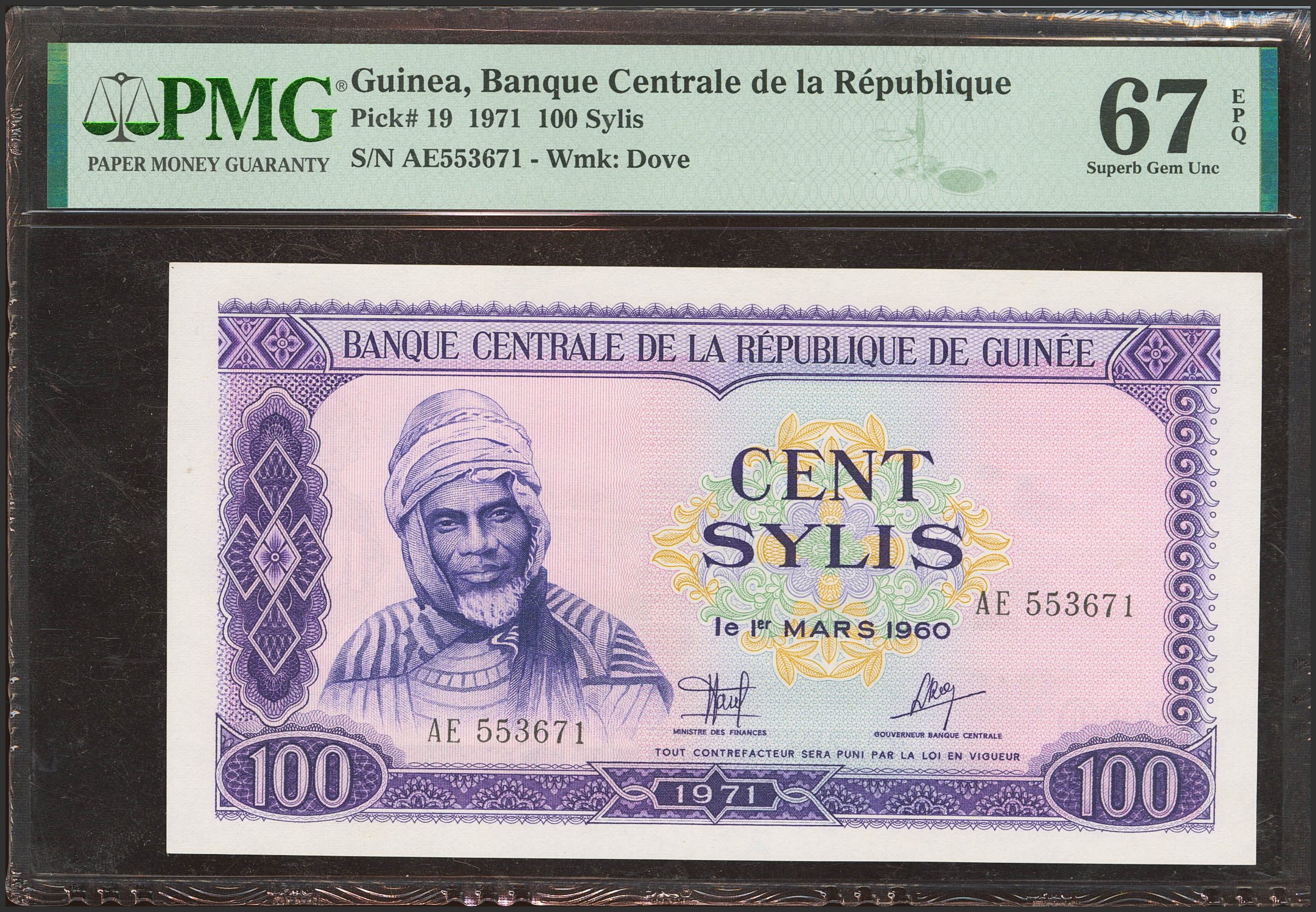 GUINEA. 100 Sylis. March 1, 1960. (Pick: 19). PMG67EPQ.