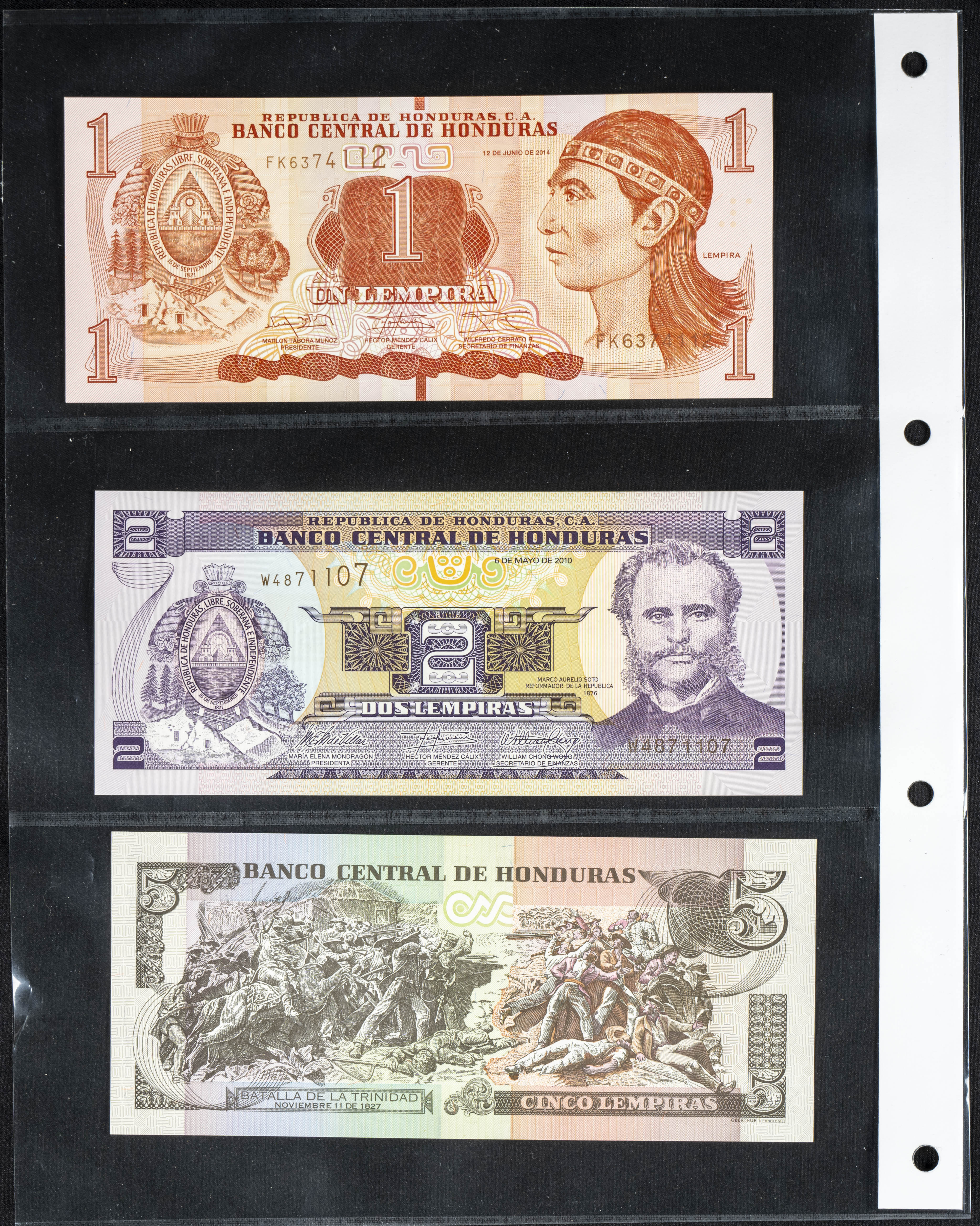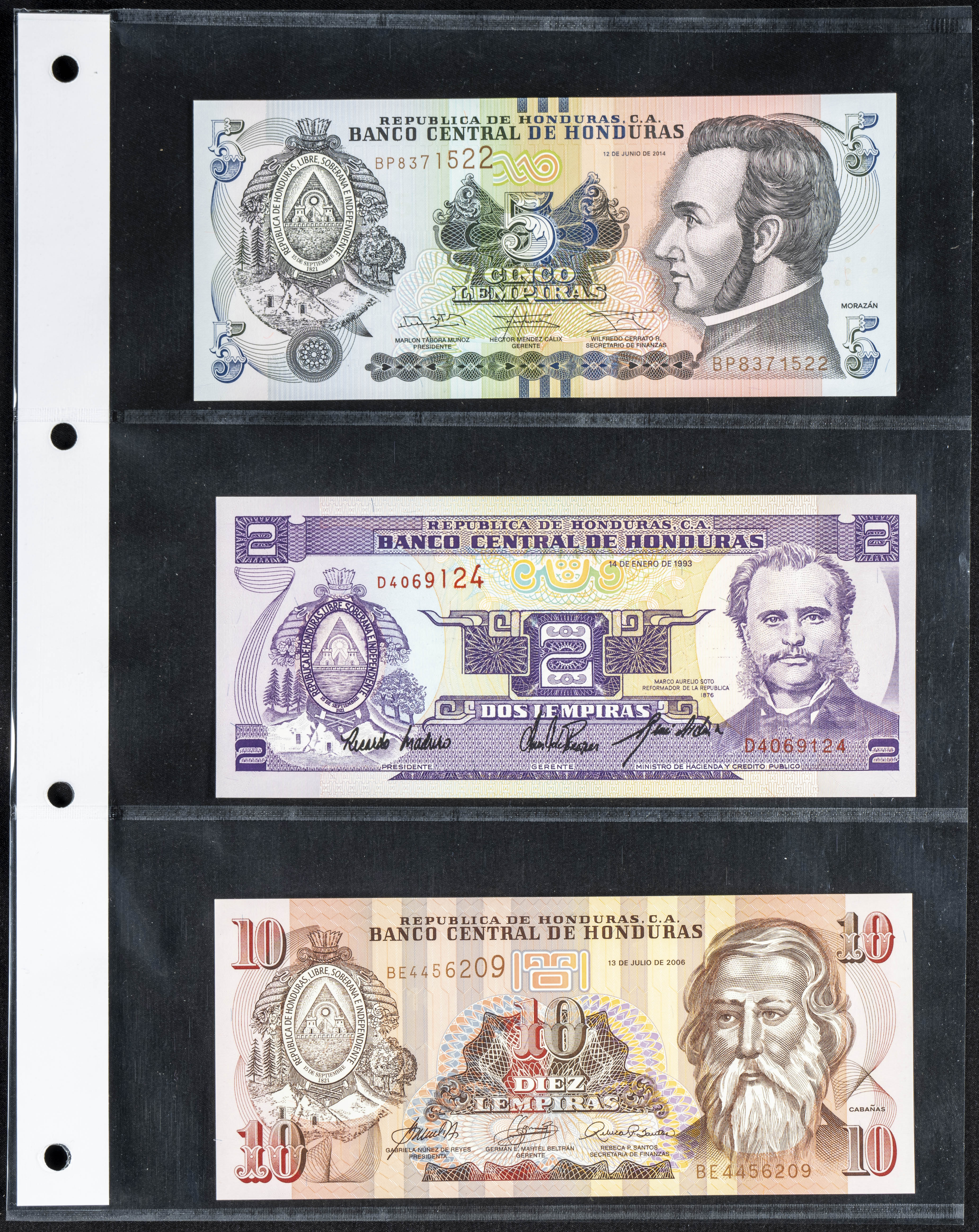 Set of 6 banknotes from Honduras of various issues, most of them nice qualities. TO EXAM.