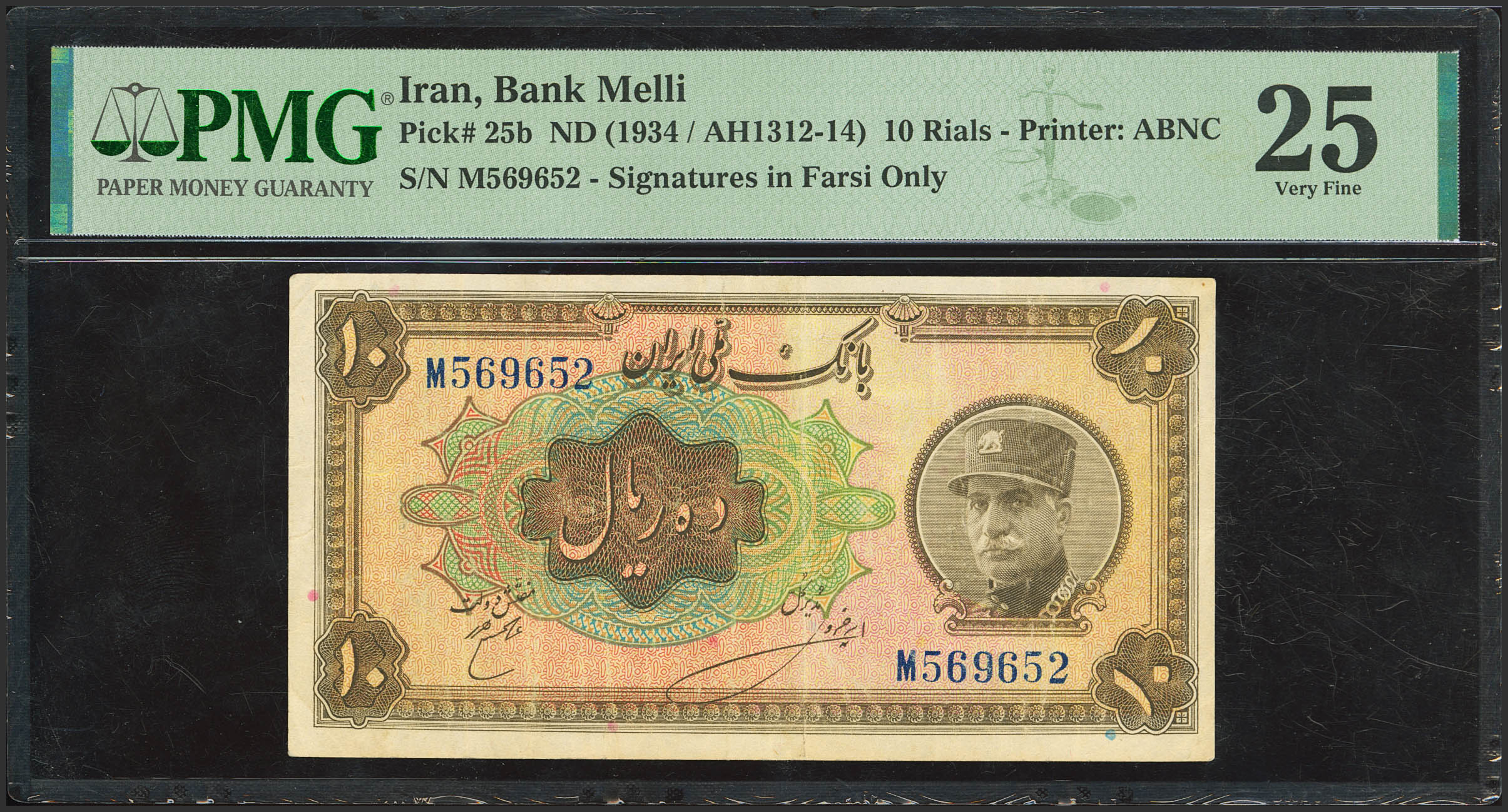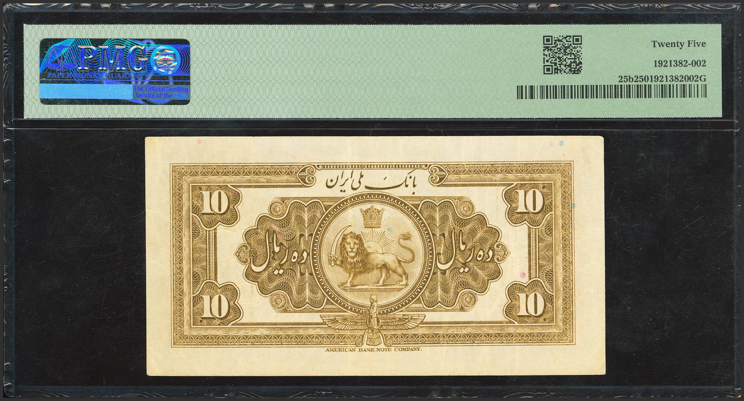 IRAN. 10 Rials. (1934ca). (Pick: 25b). PMG25.