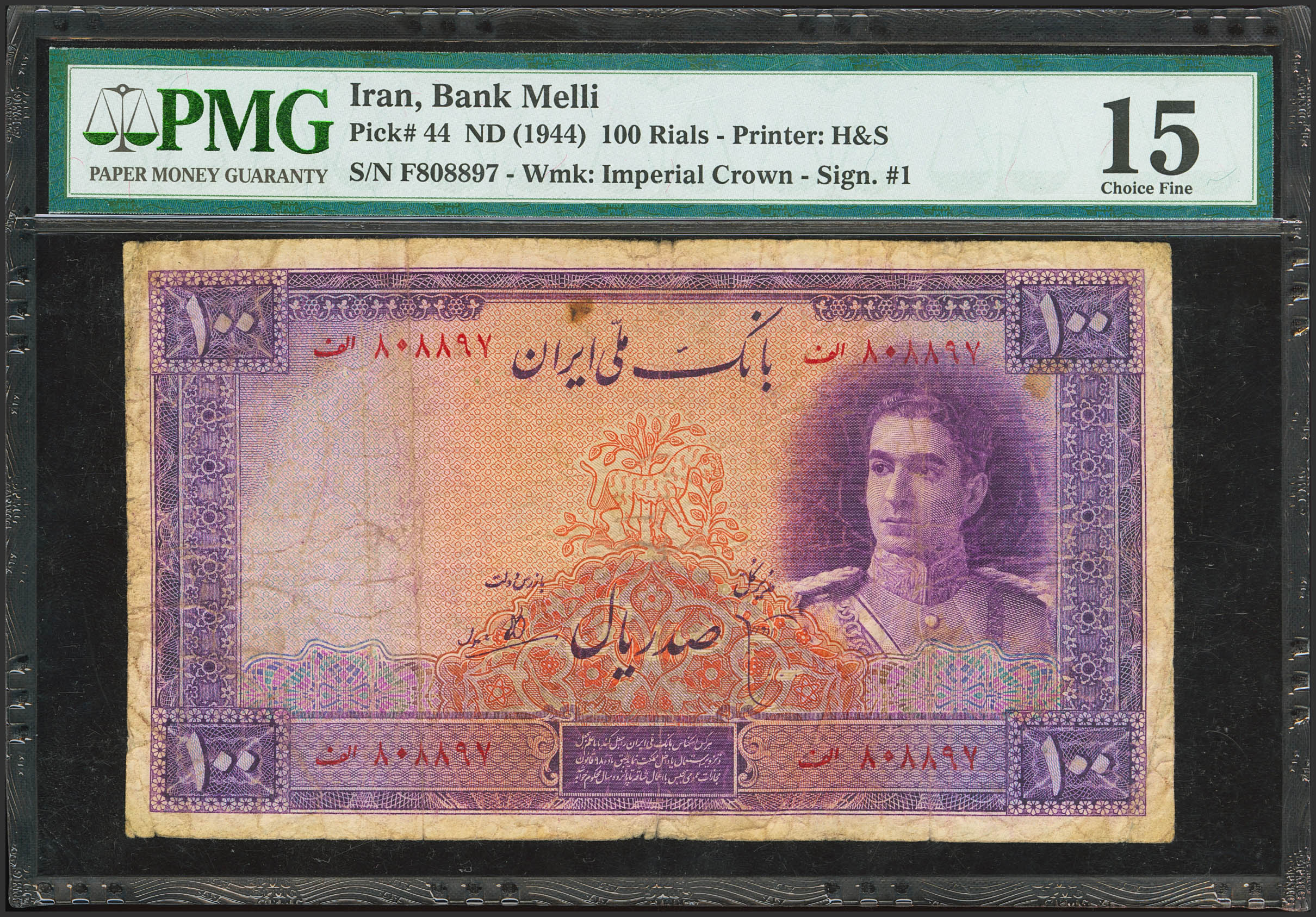 IRAN. 100 Rials. (1944ca). (Pick: 44). PMG15.