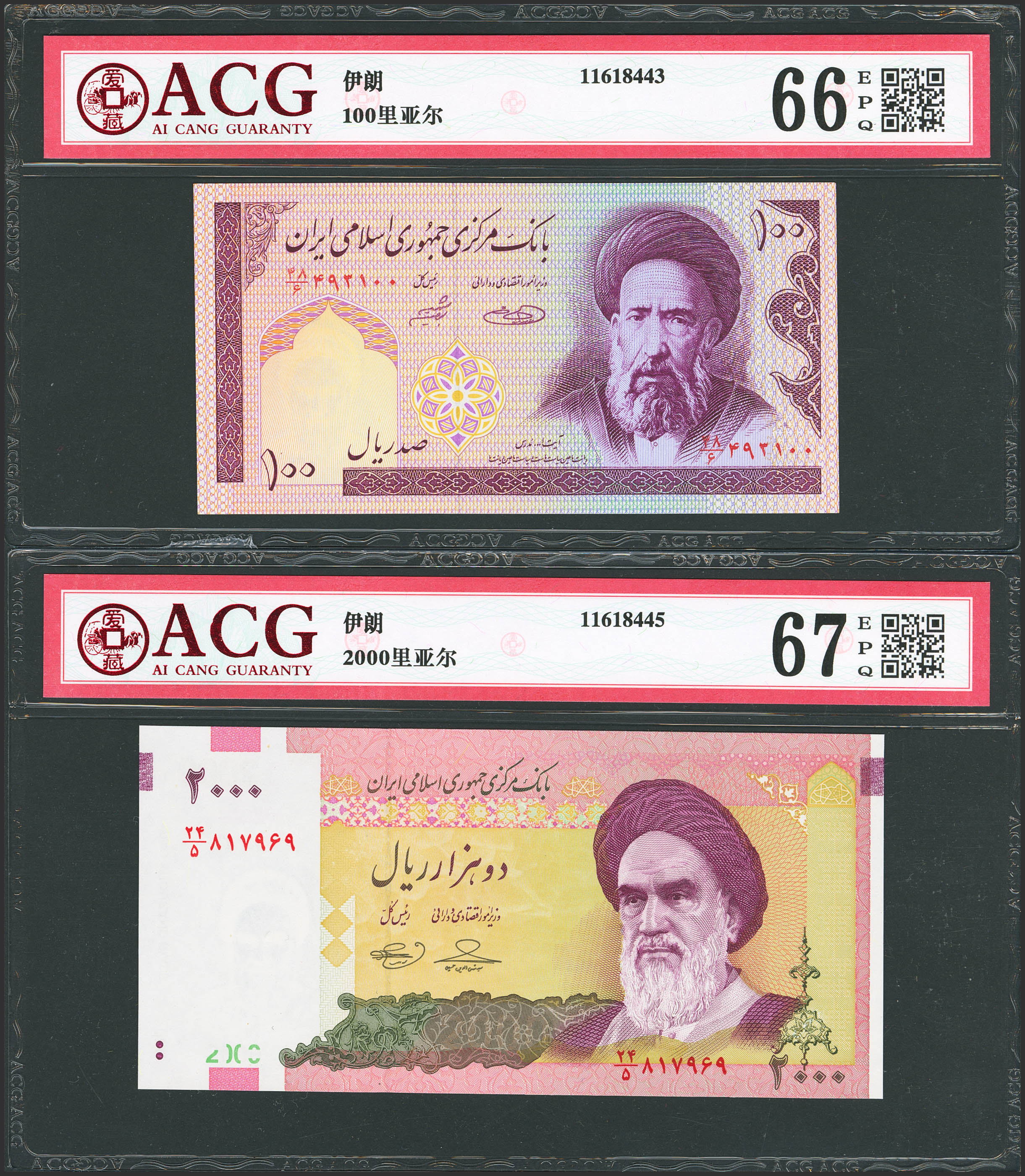 IRAN. 100 Rials. (1980ca). (Pick: 140g, 144d). CGA66EPQ, 67EPQ.