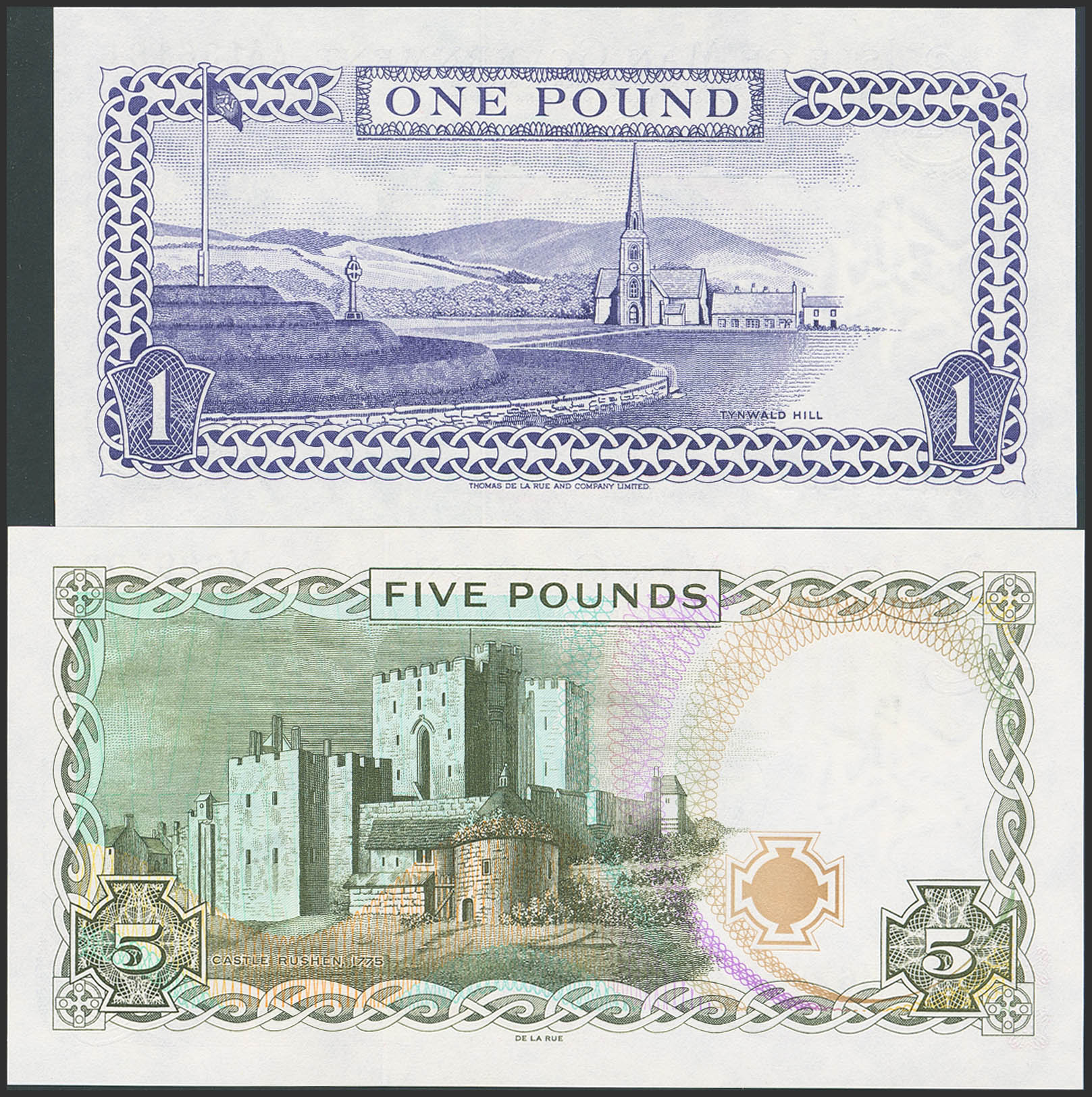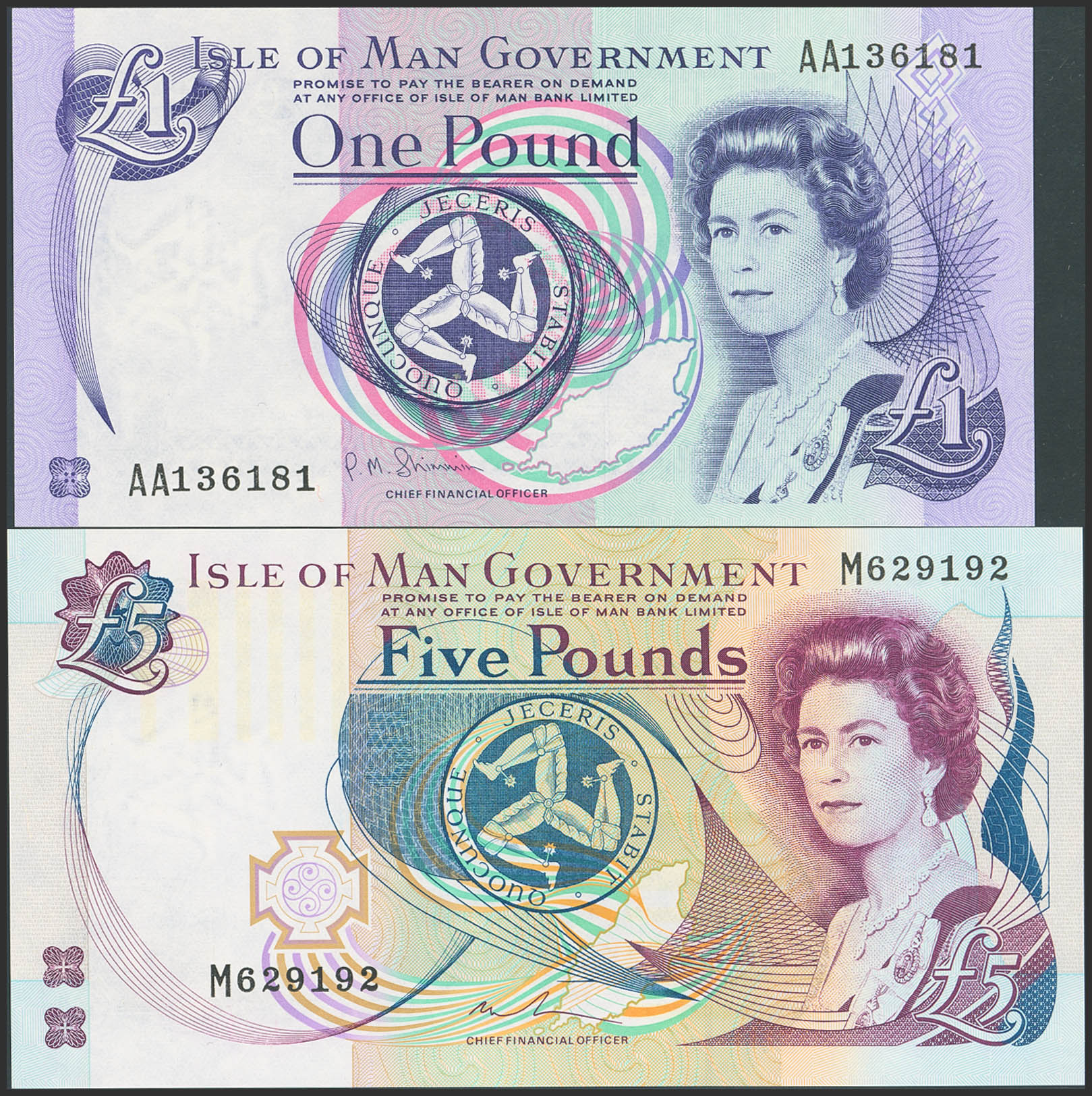 ISLE OF MAN. 1 Pound and 5 Pounds. (1972ca). (Pick: 29, 48). Uncirculated.
