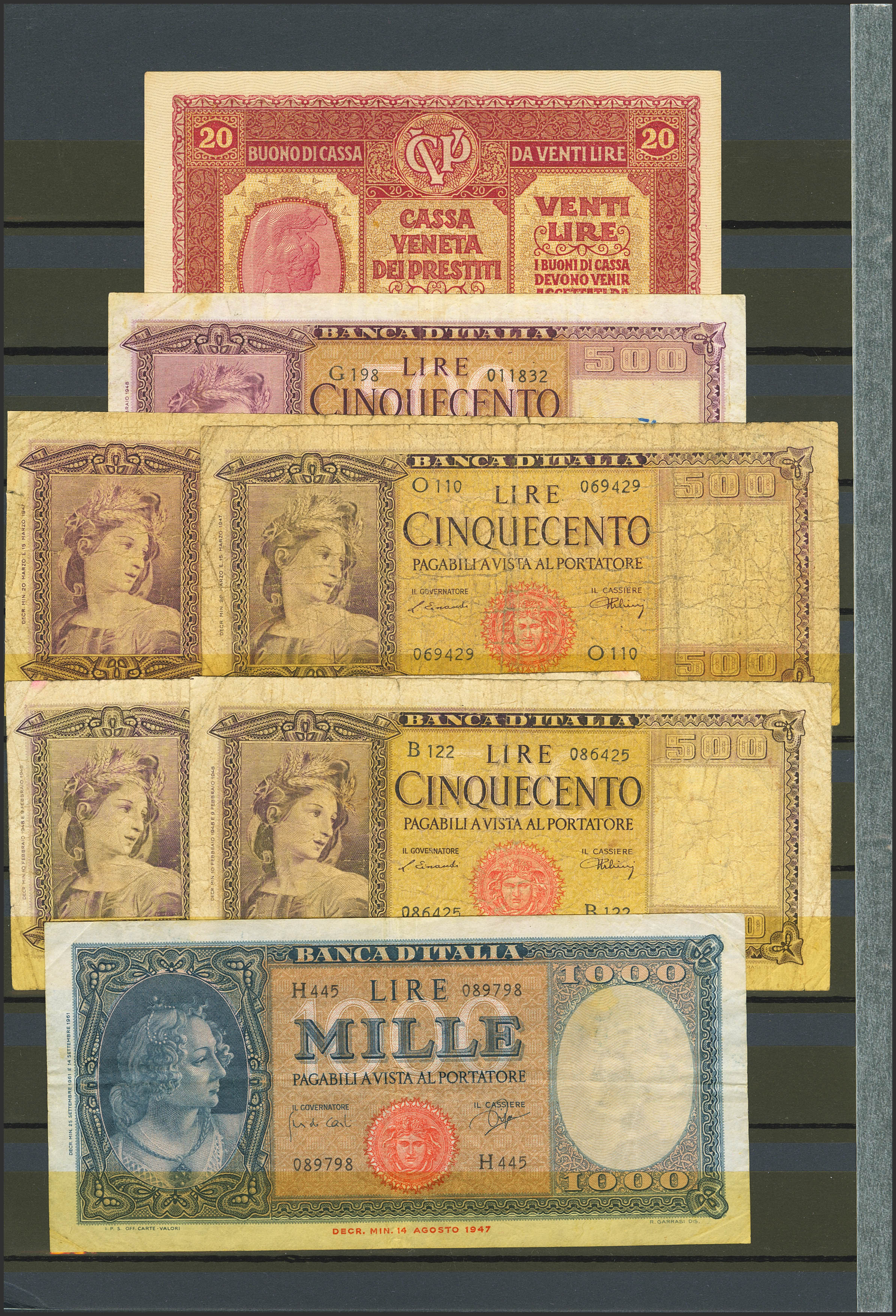 Set of 16 banknotes of Italy, various issues, different qualities. TO EXAM.