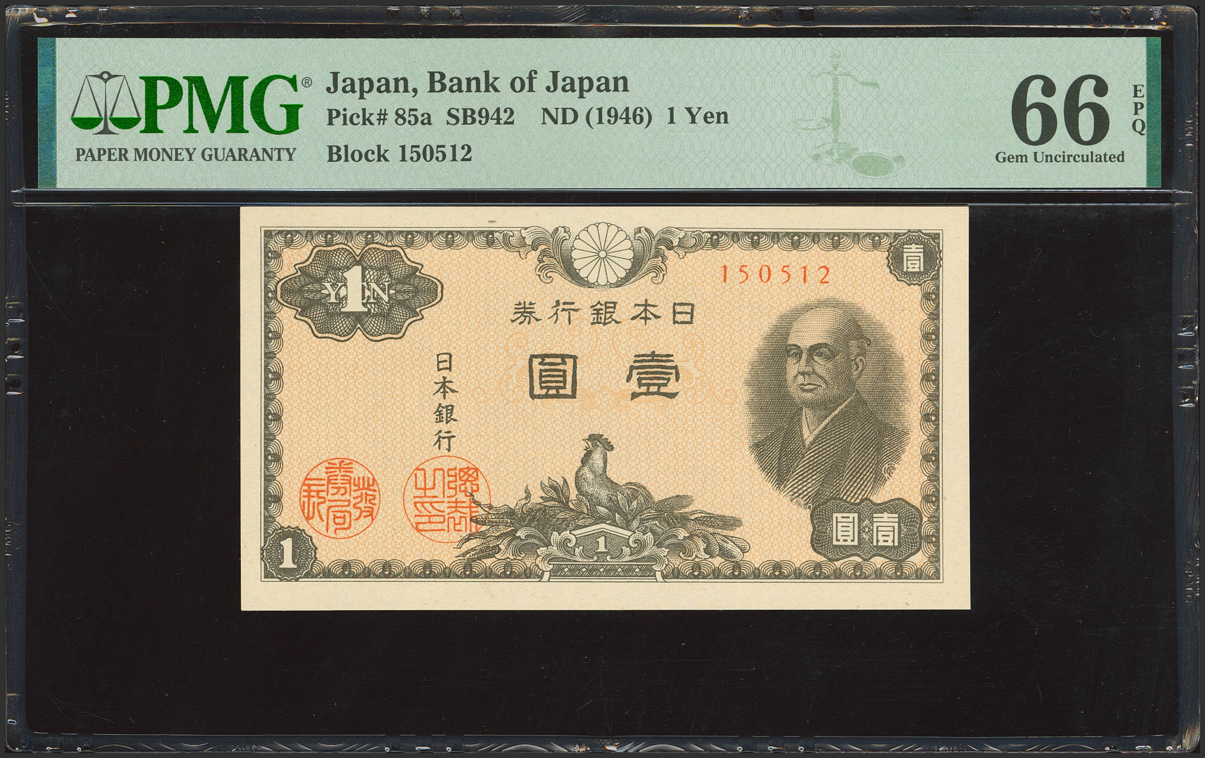 JAPAN. 1 Yen. (1946ca). (Pick: 85a). PMG66EPQ.