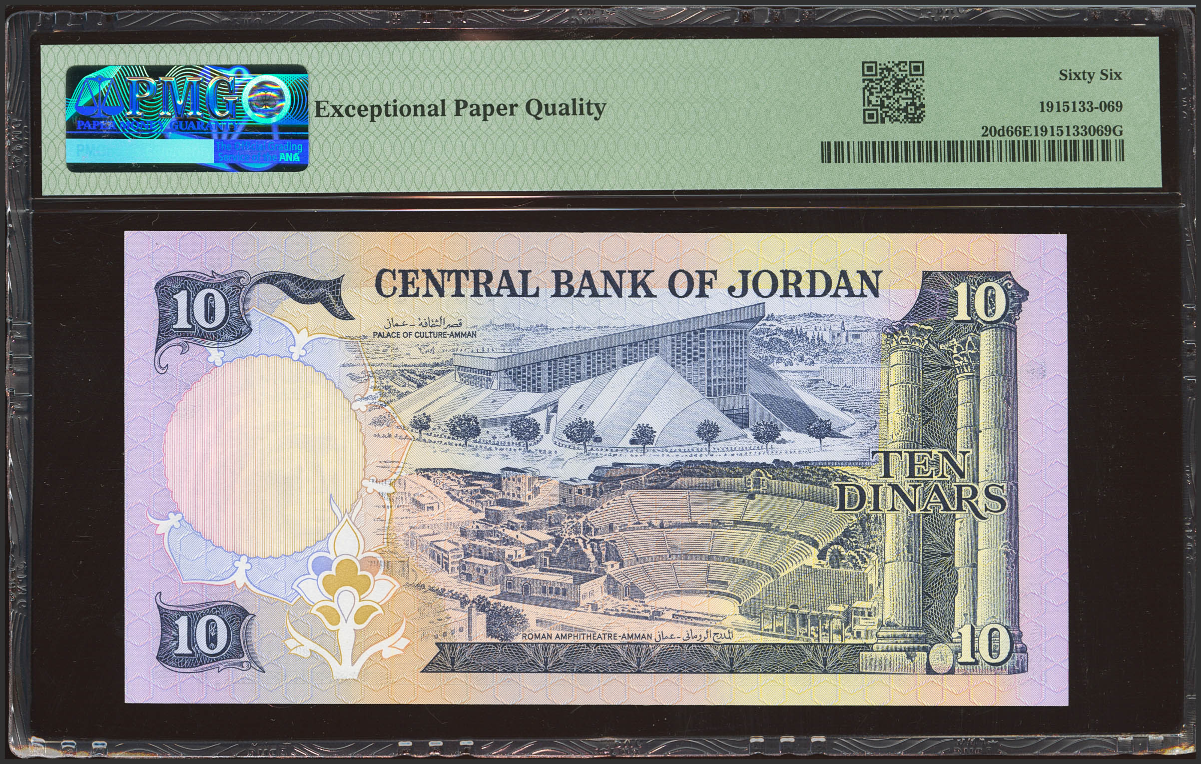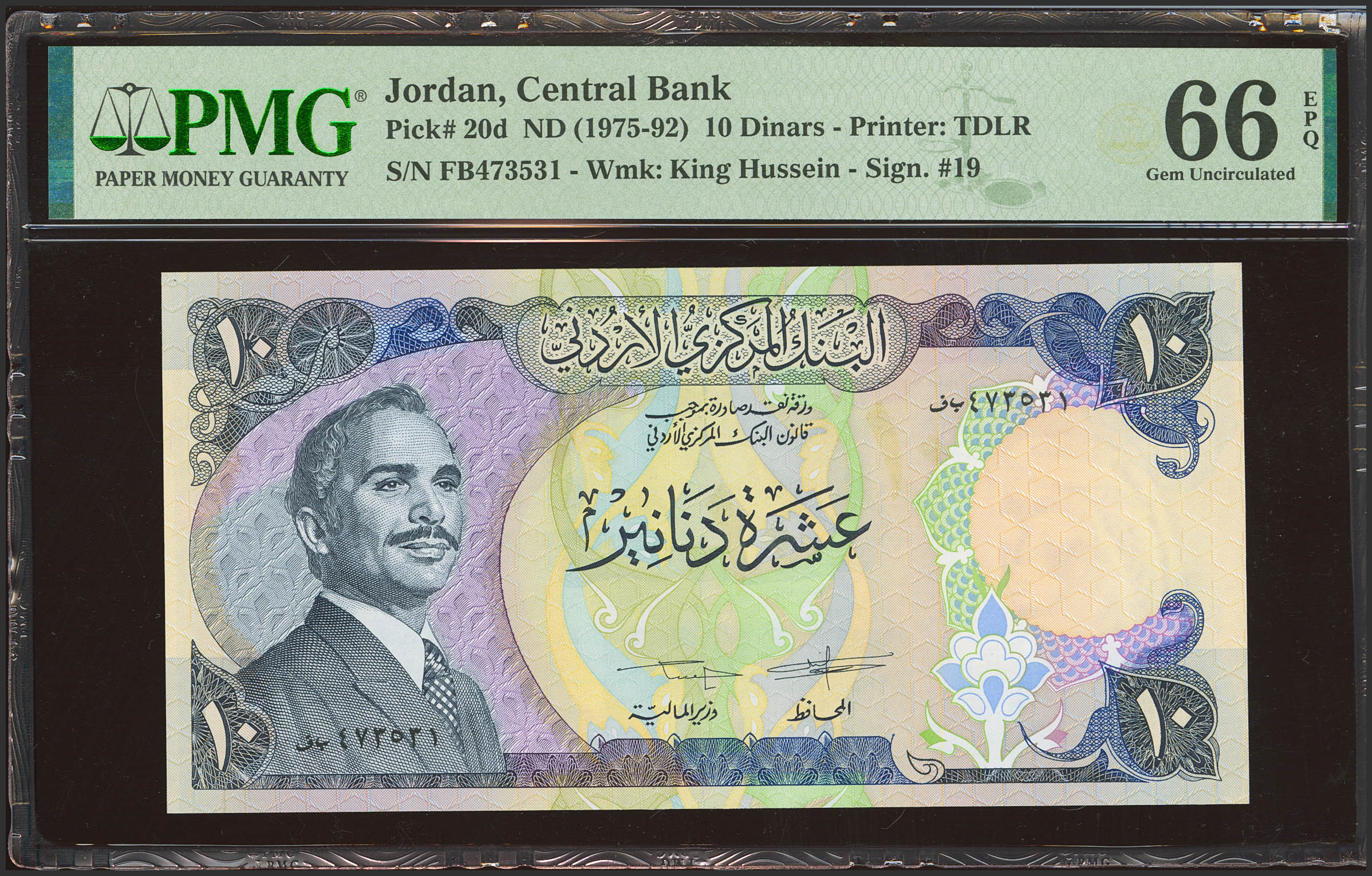 JORDAN. 10 Dinars. (1975ca). (Pick: 20d). PMG66EPQ.