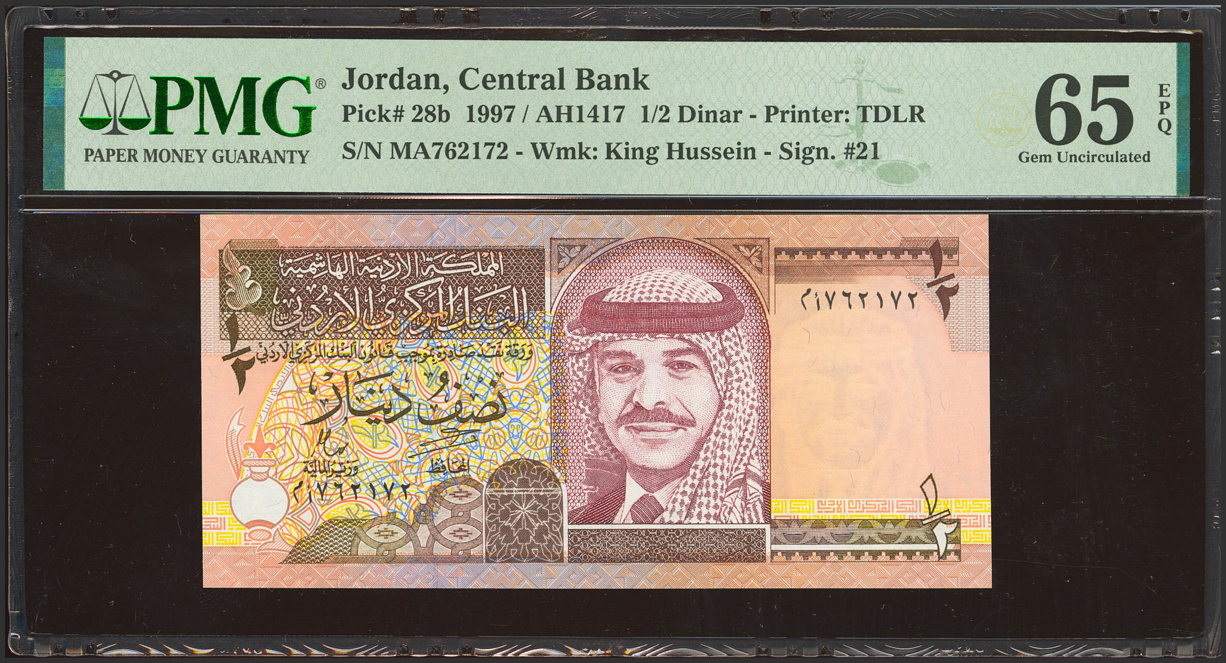 JORDAN. ½ Dinar. 1997. (Pick: 28b). PMG65EPQ.