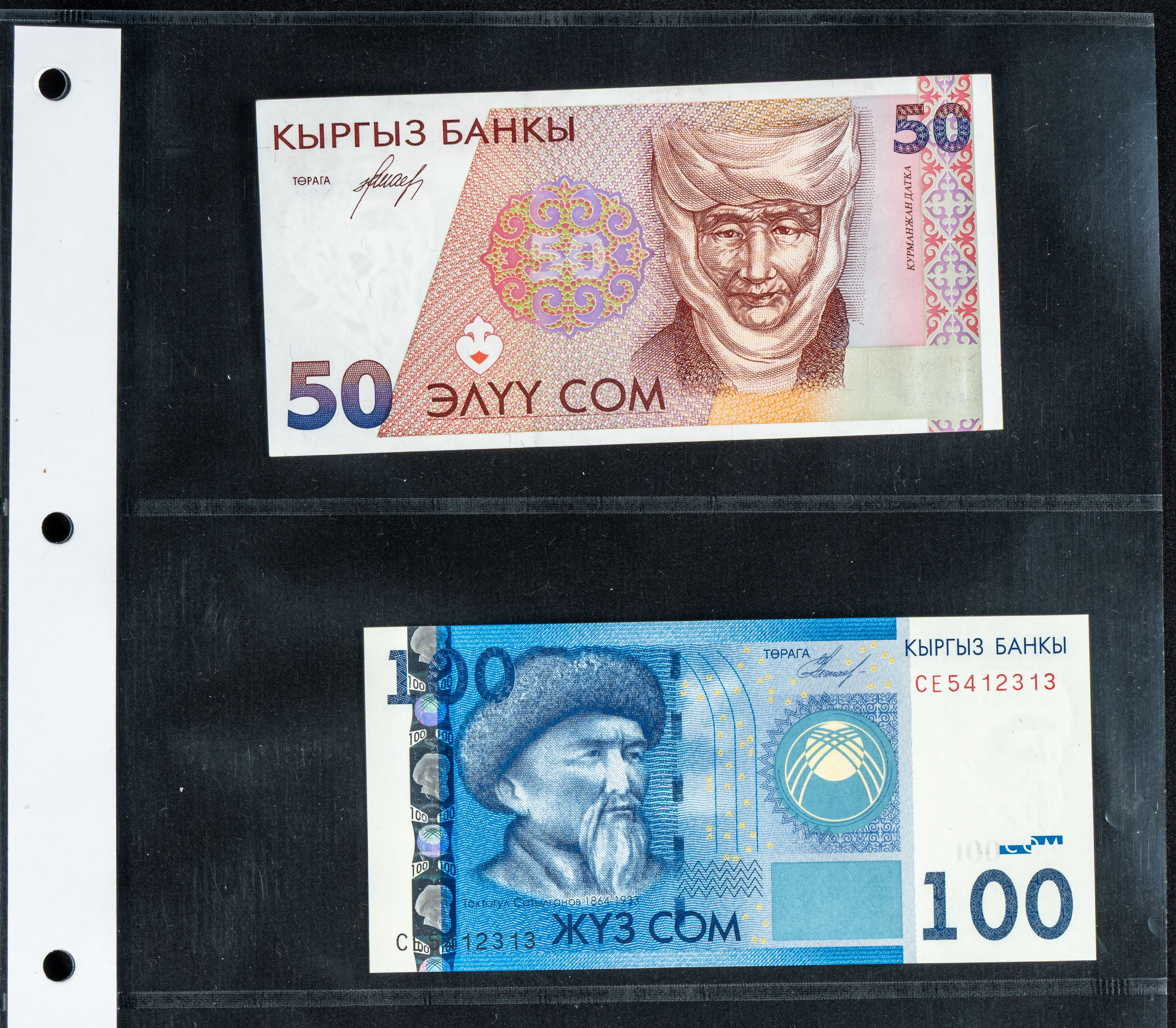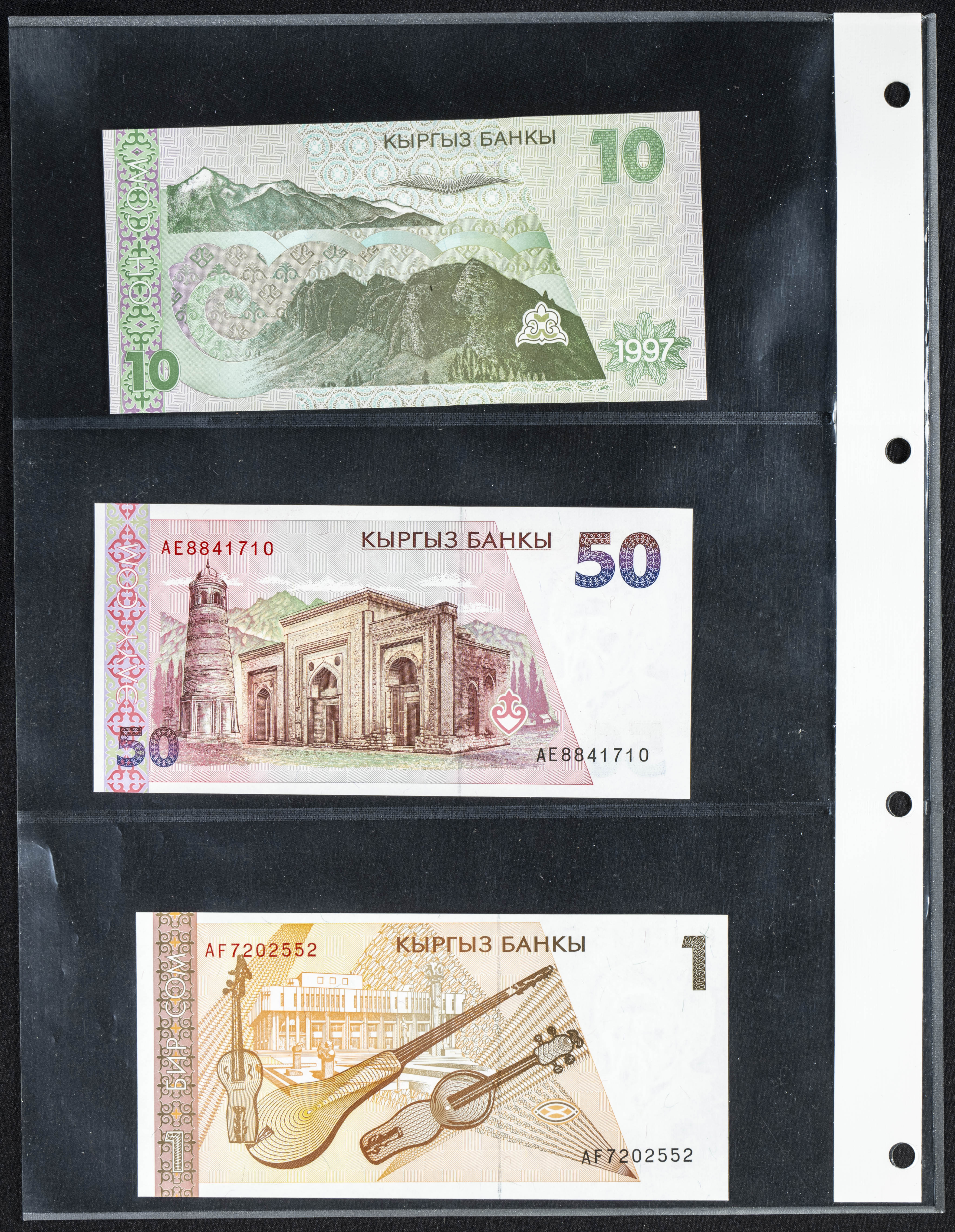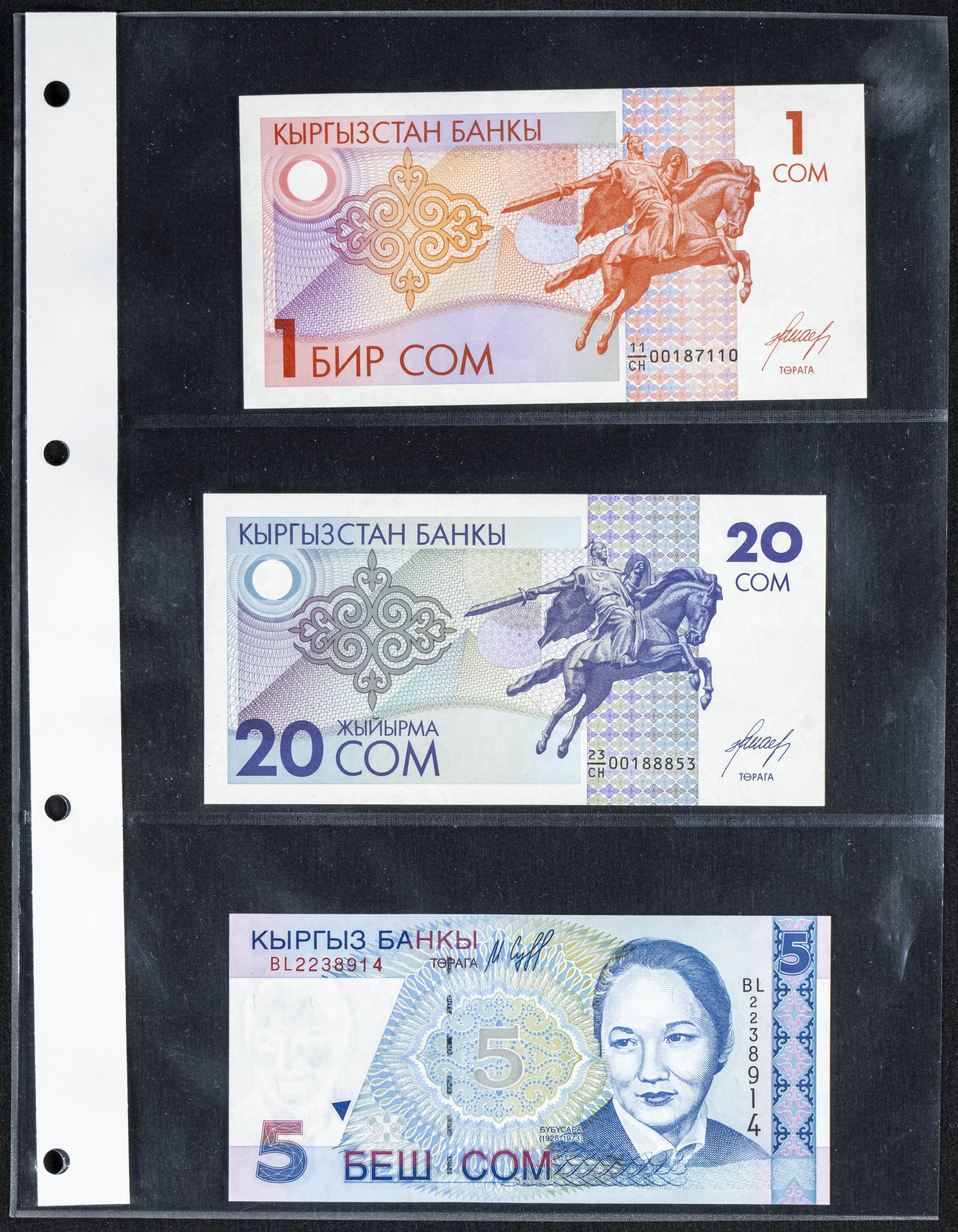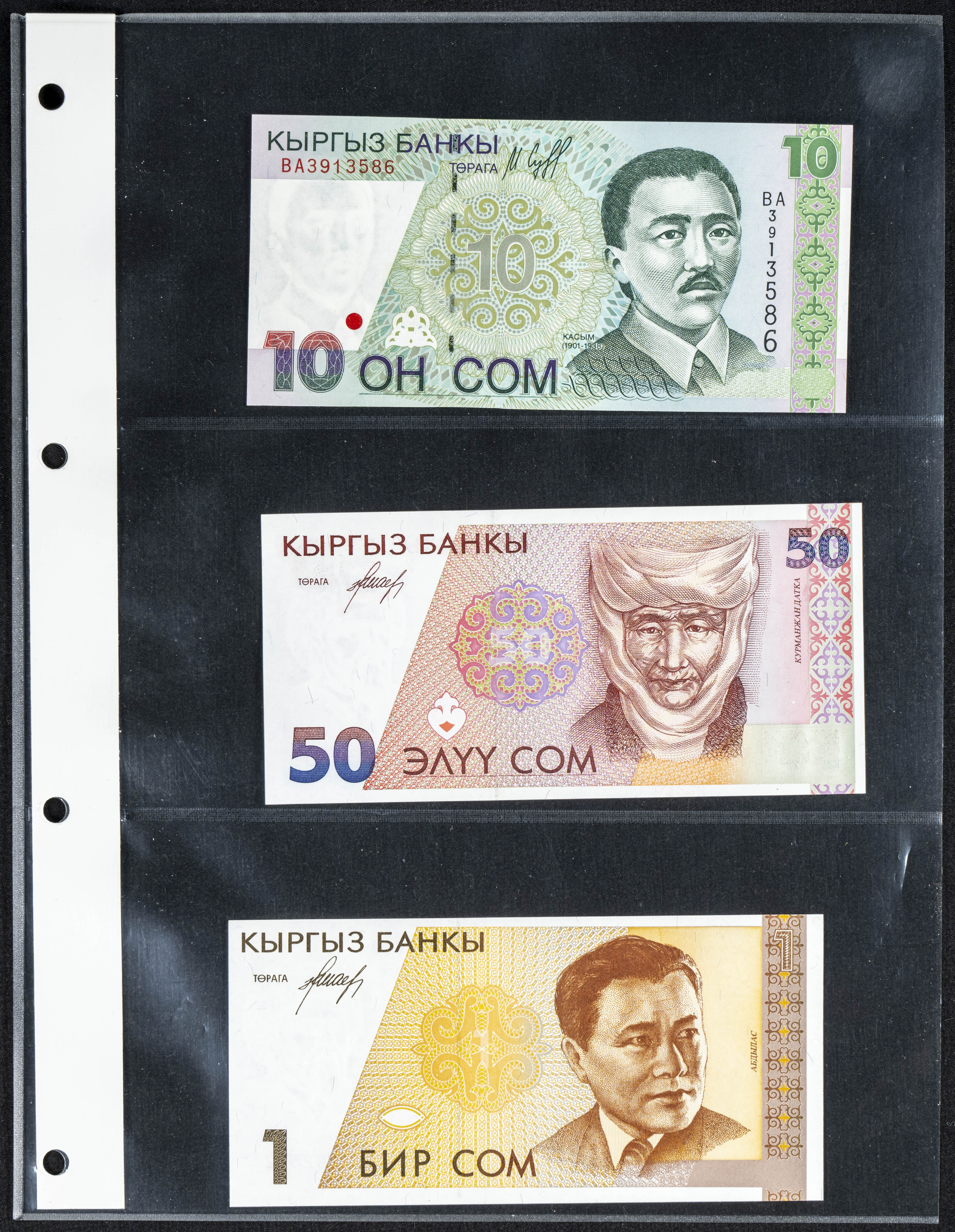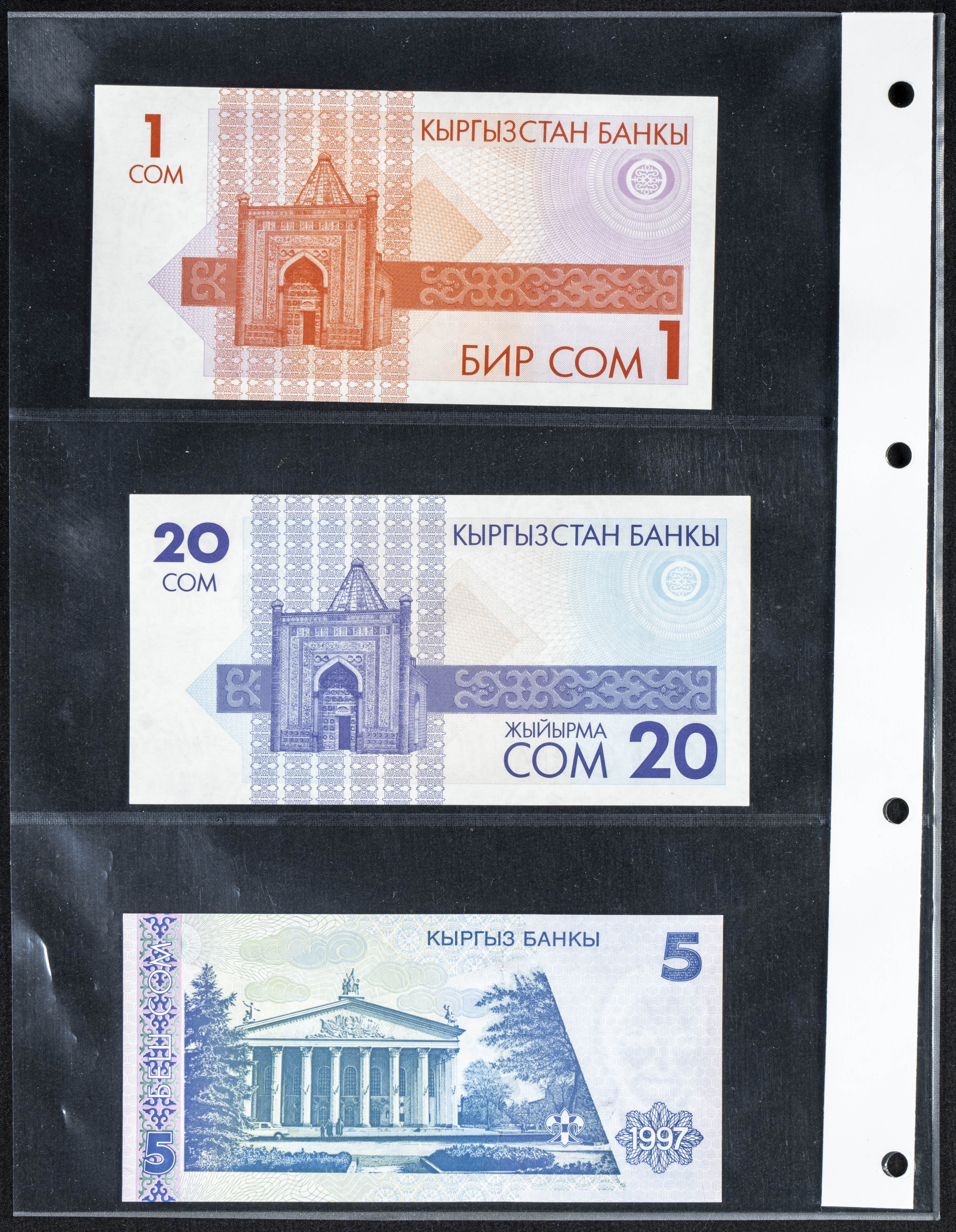 Set of 8 banknotes from Kyrgyzstan of various issues, most of them nice qualities. TO EXAM.