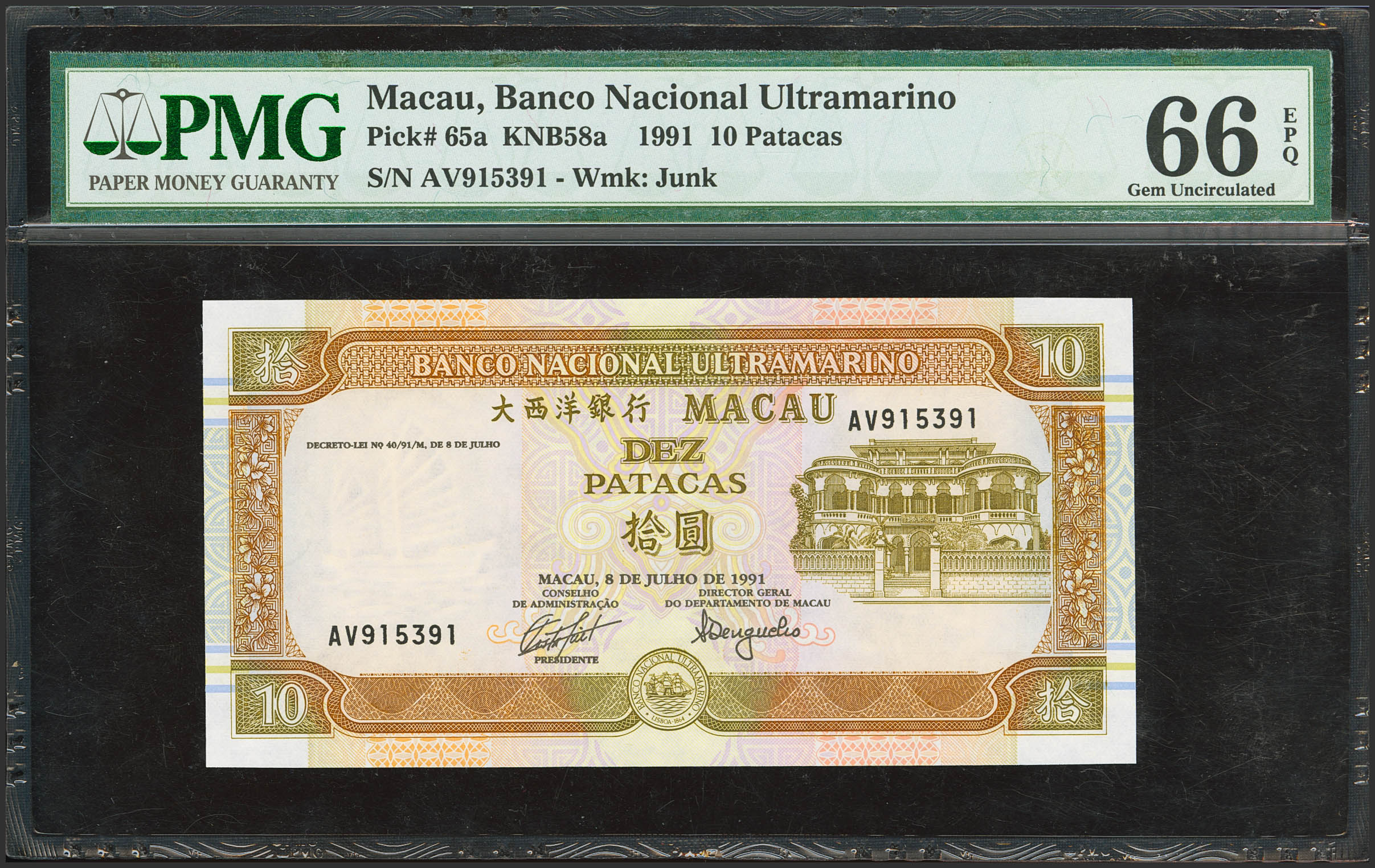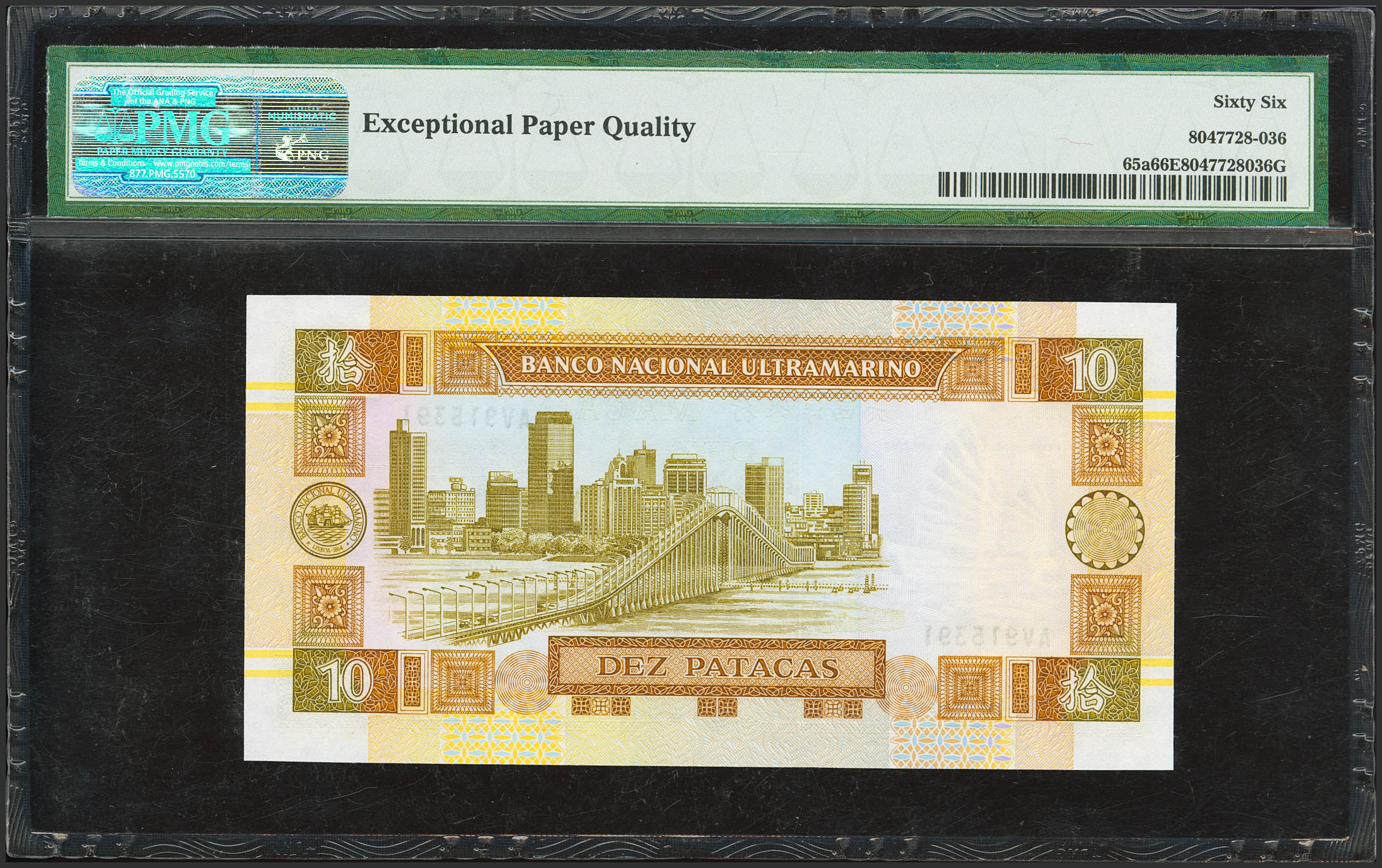 MACAU. 10 Patacas. Portuguese administration. 1991. (Pick: 65a). PMG66EPQ.