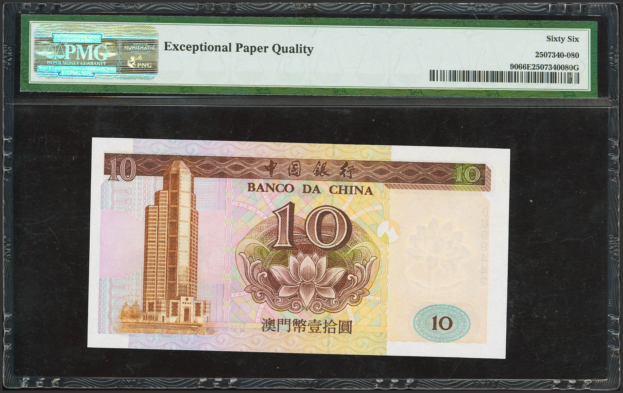 English MACAU. 10 Patacas. Portuguese administration. 1995. (Pick: 90). PMG66EPQ.