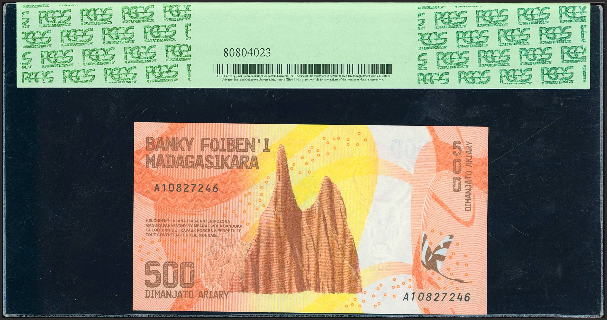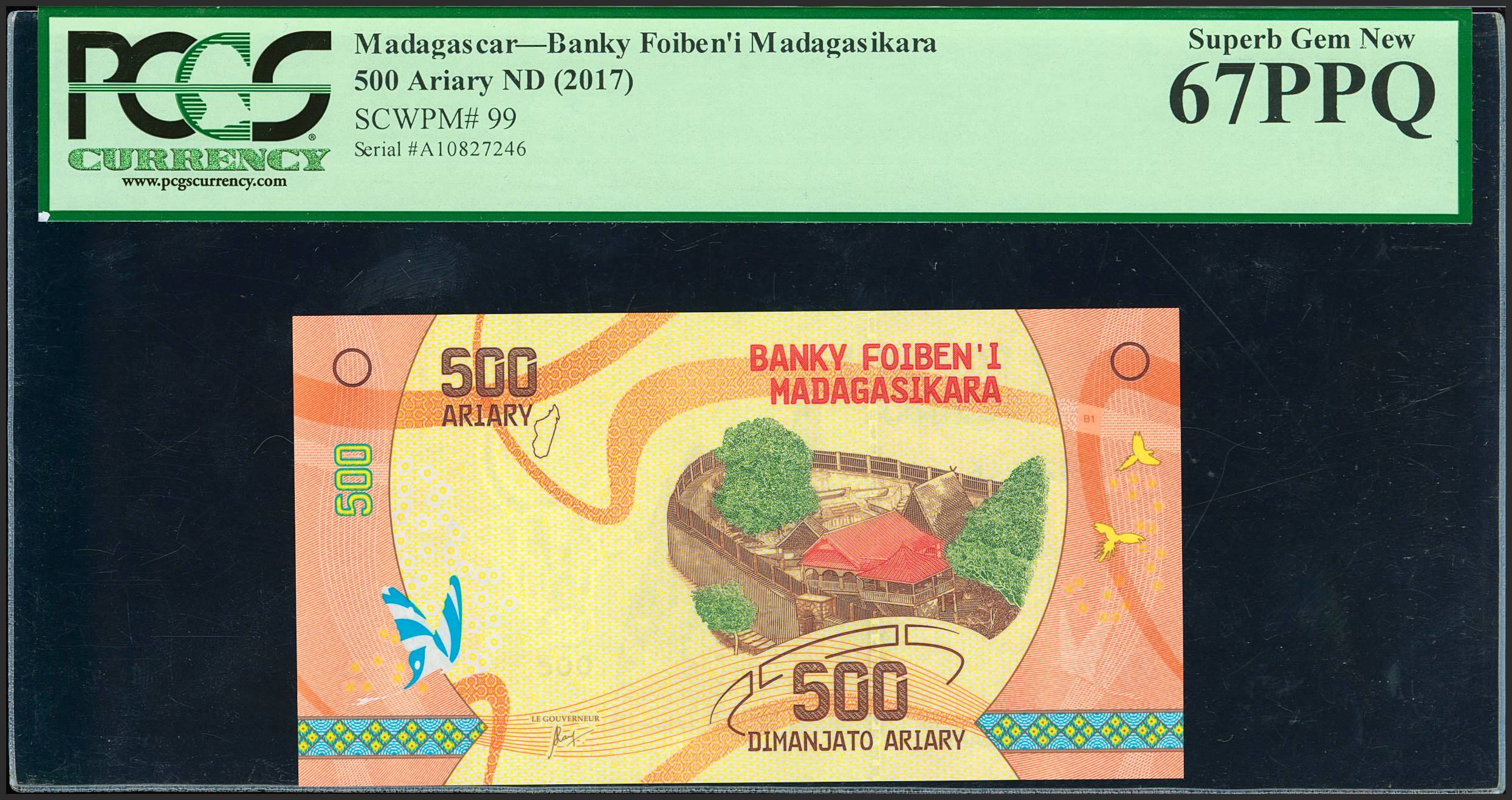 MADAGAUncirculatedAR. 500 Ariary. 2017. (Pick: 99). PCGS67PPQ.