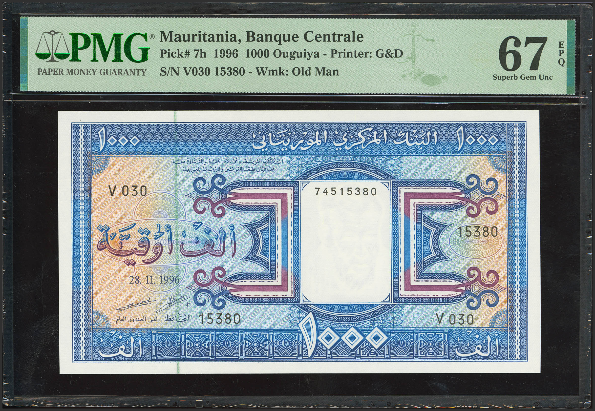 MAURITANIA. 1000 Ouguiya. November 28, 1996. (Pick: 7am). PMG67EPQ.