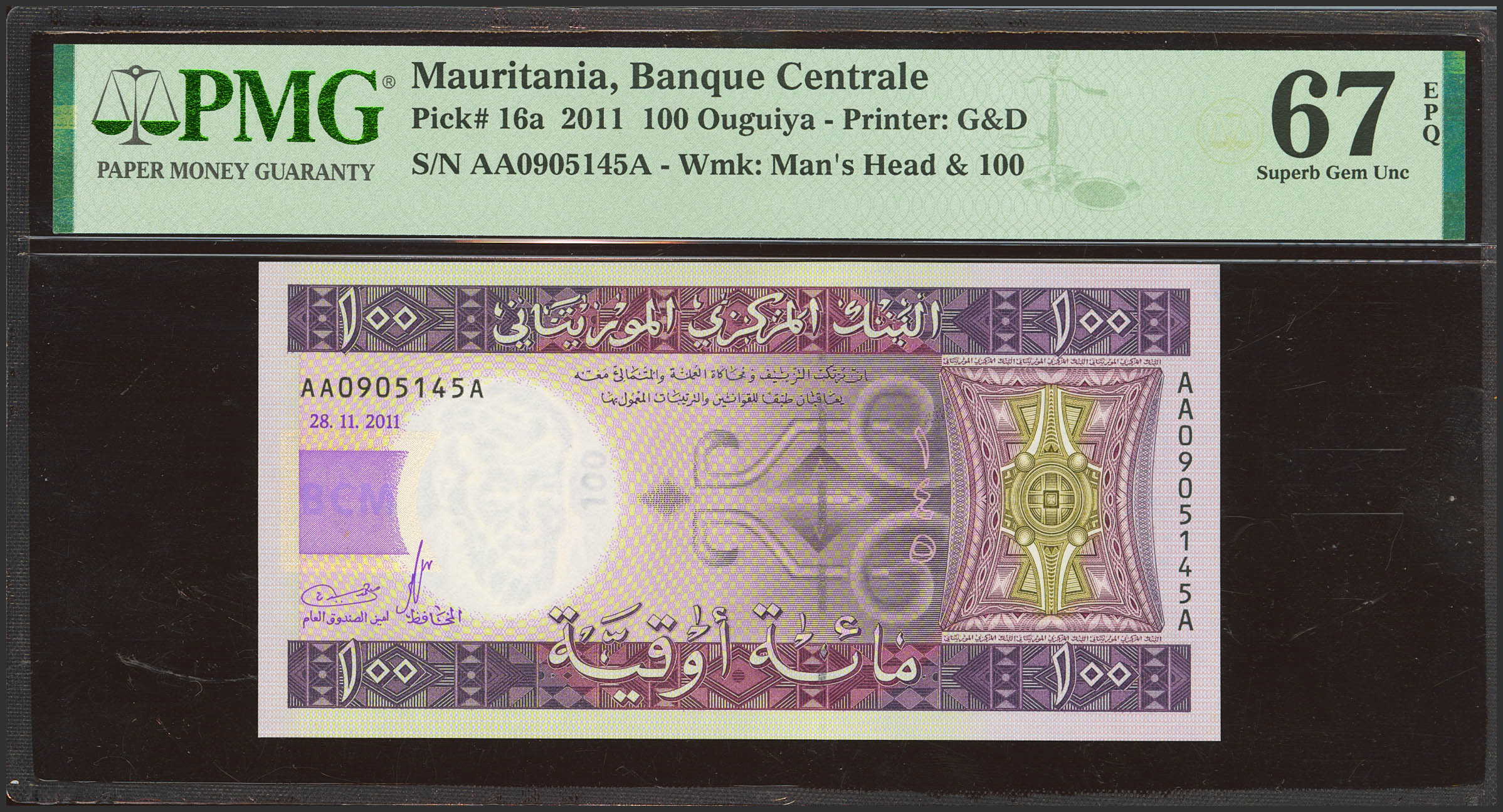 MAURITANIA. 100 Ouguiya. 2011. (Pick: 16a). PMG67EPQ.