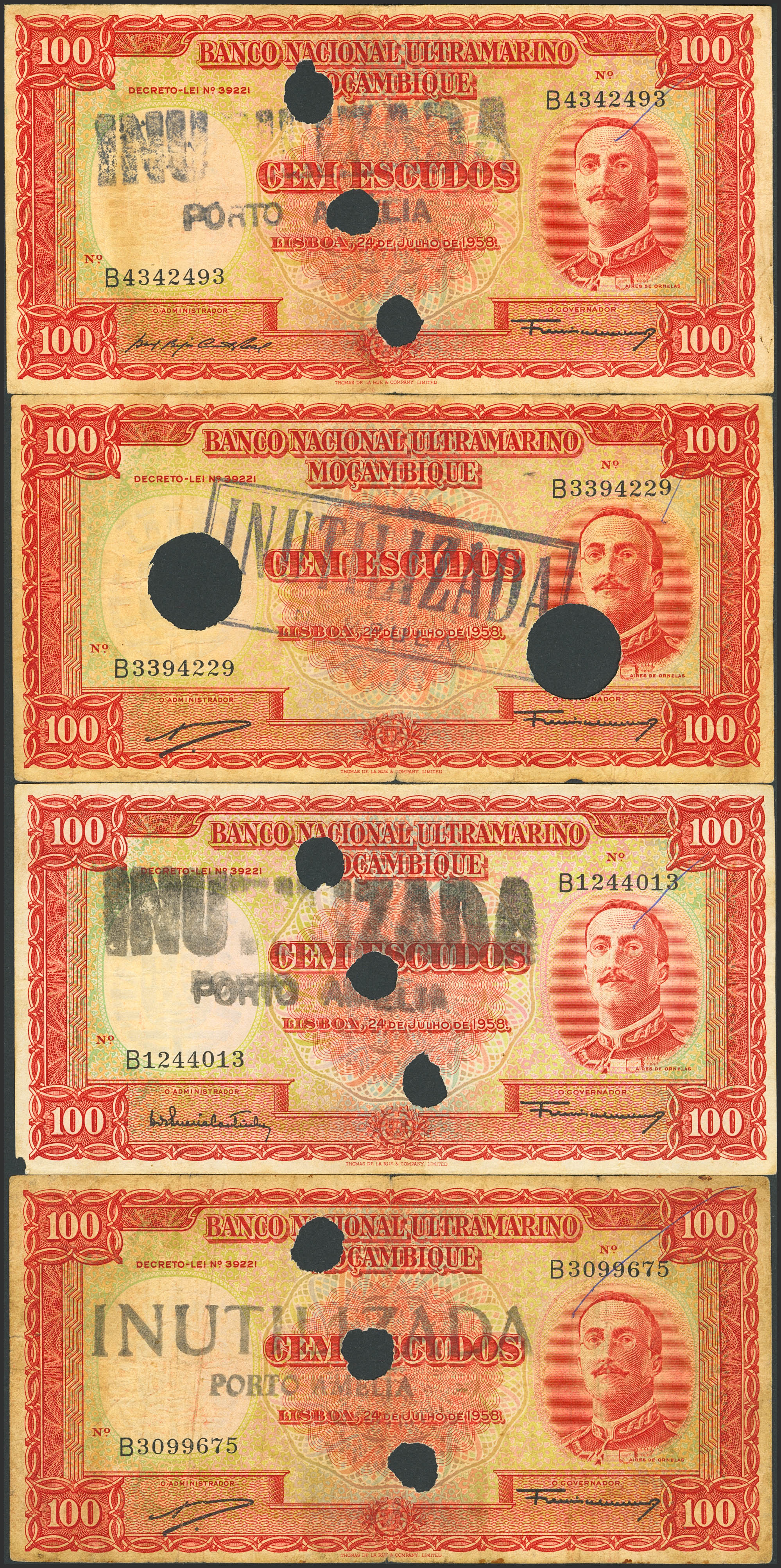 MOZAMBIQUE. 100 Shields (4). (1958ca). (Pick: 107). Canceled and "unused". Fine.