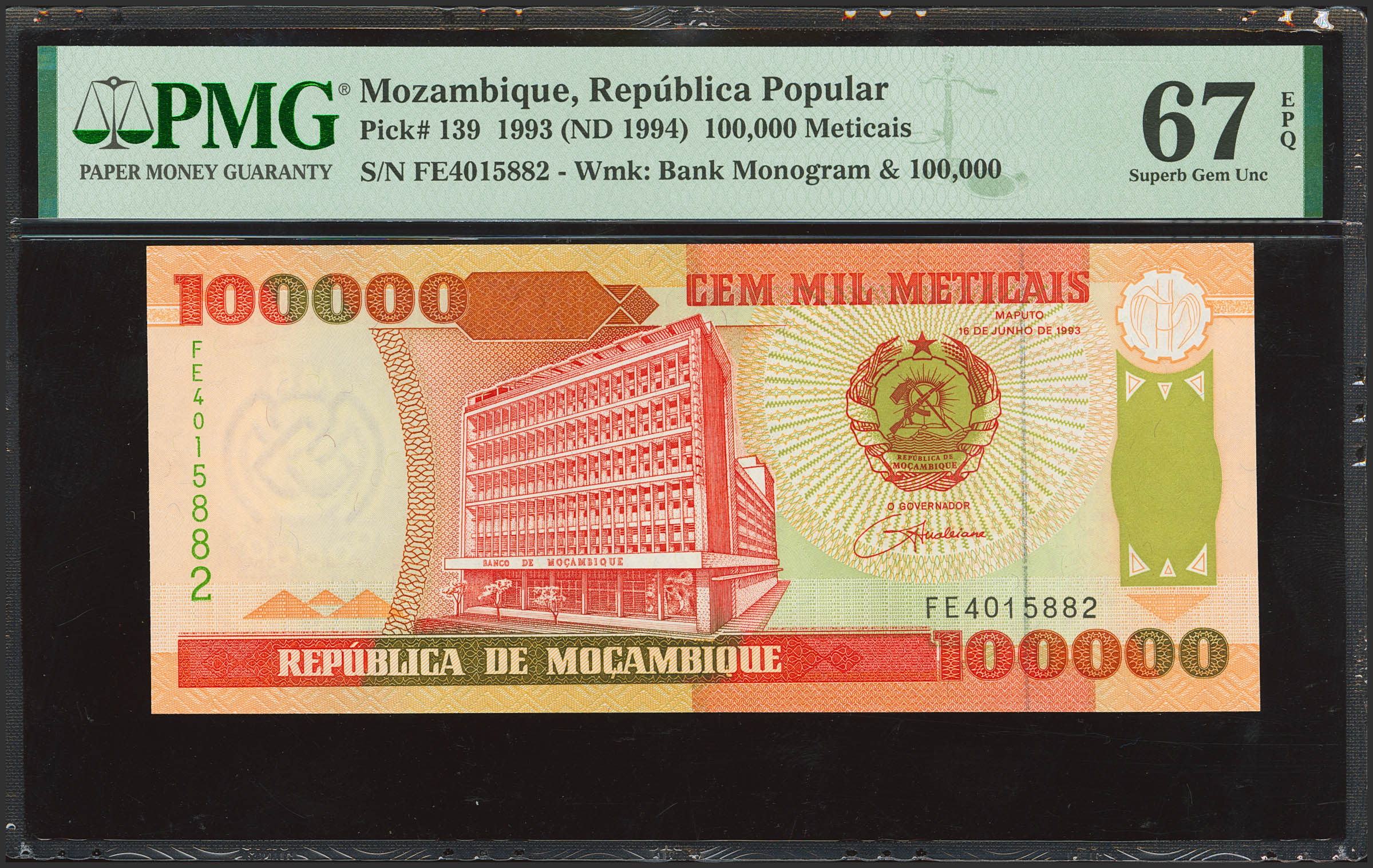 MOZAMBIQUE. 100000 Meticais. (1993ca). (Pick: 139). PMG67EPQ.