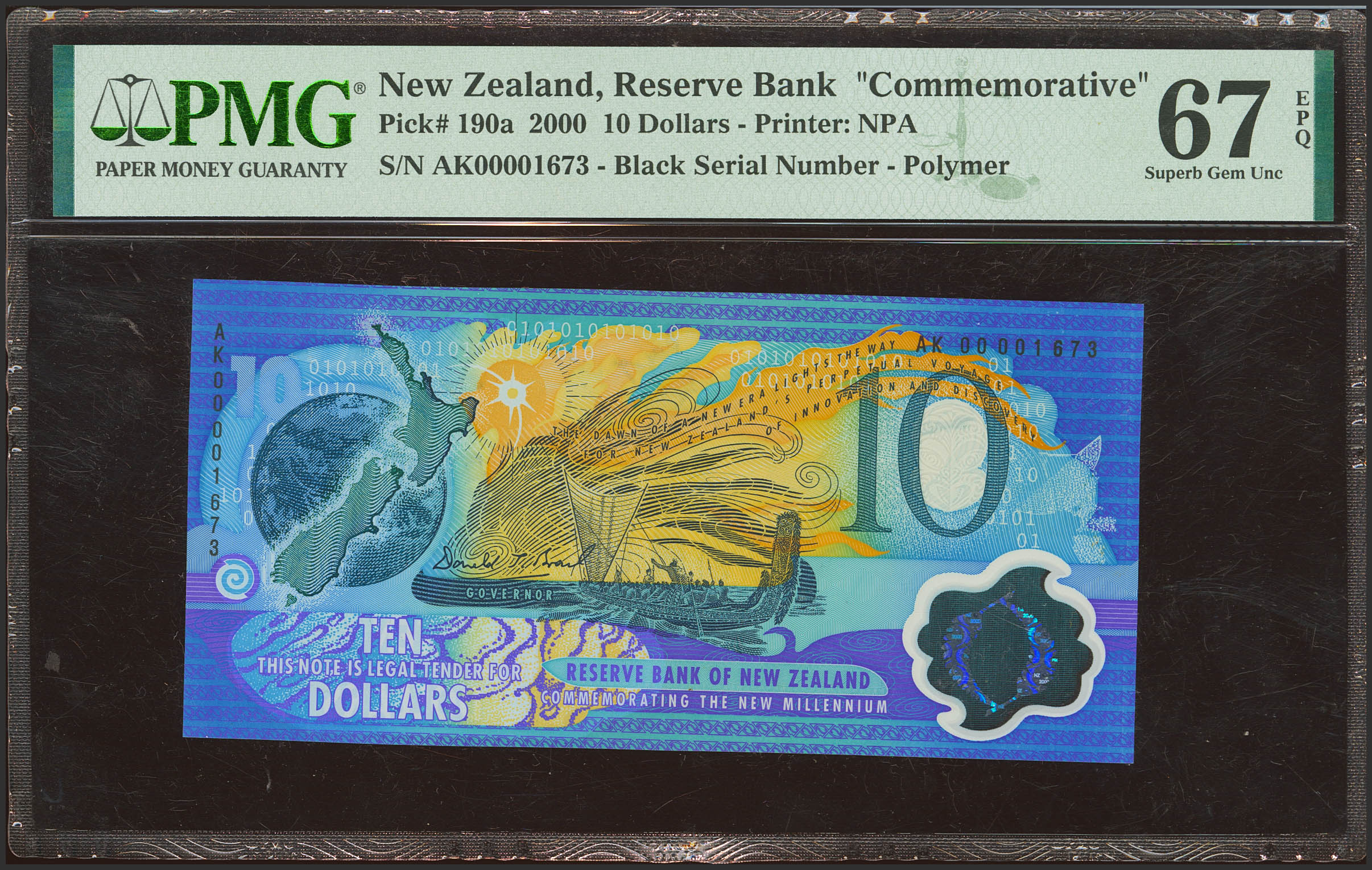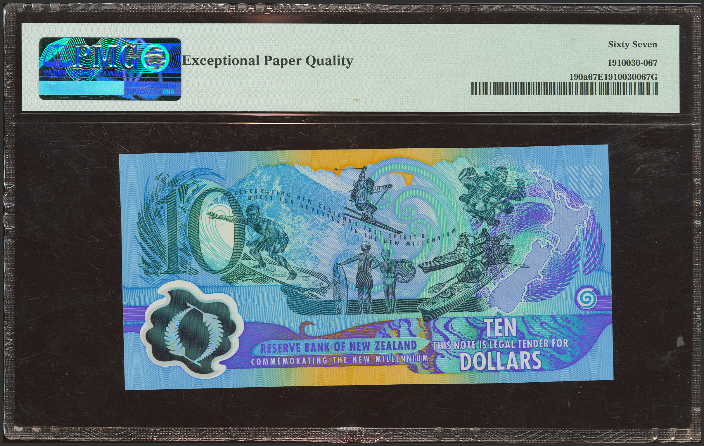 English NEW ZEALAND. 10 Dollars. 2000. (Pick: 190a). PMG67EPQ.
