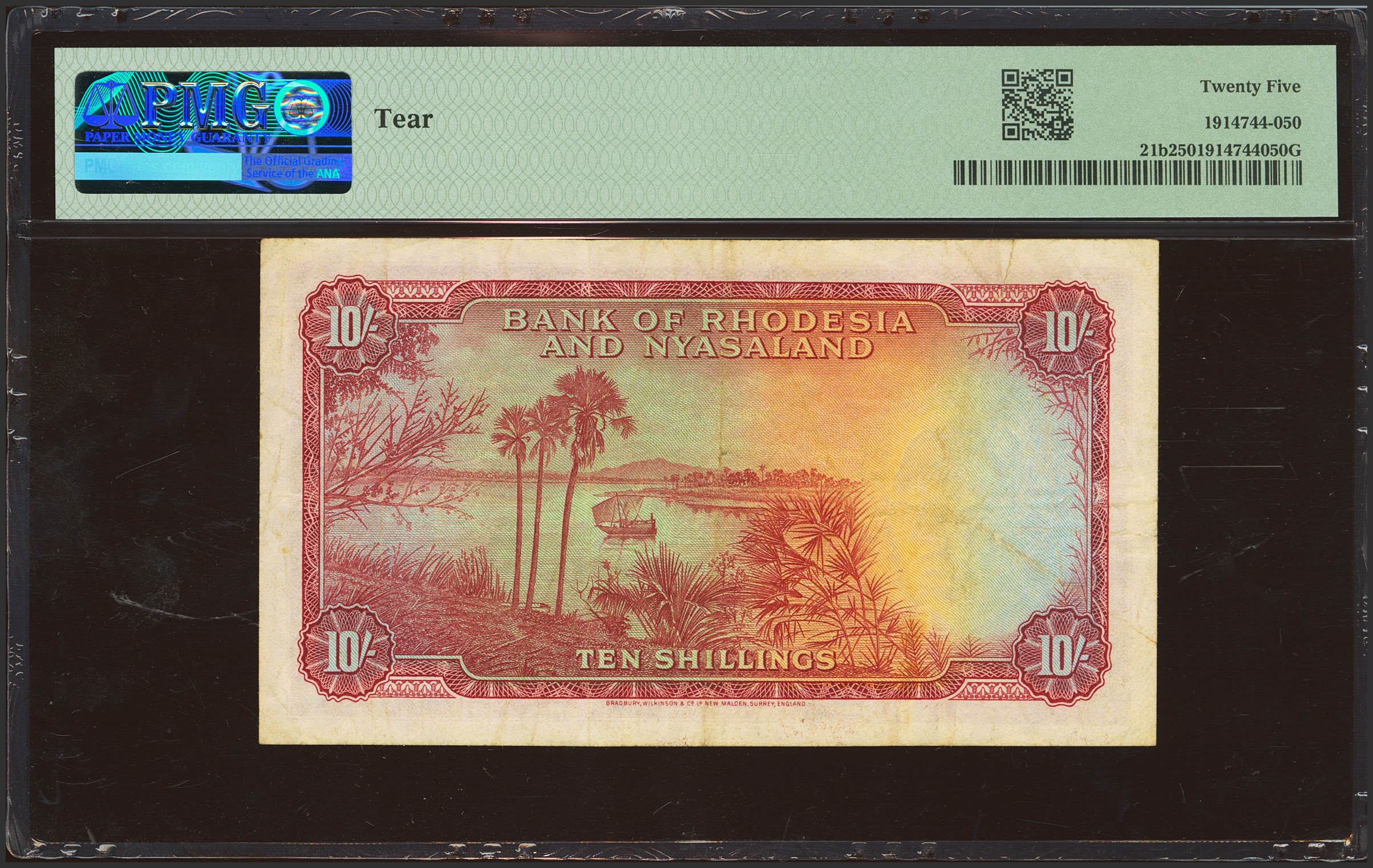 English RHODESIA. 10 Shillings. 1960. (Pick: 20b). PMG25 (tear).