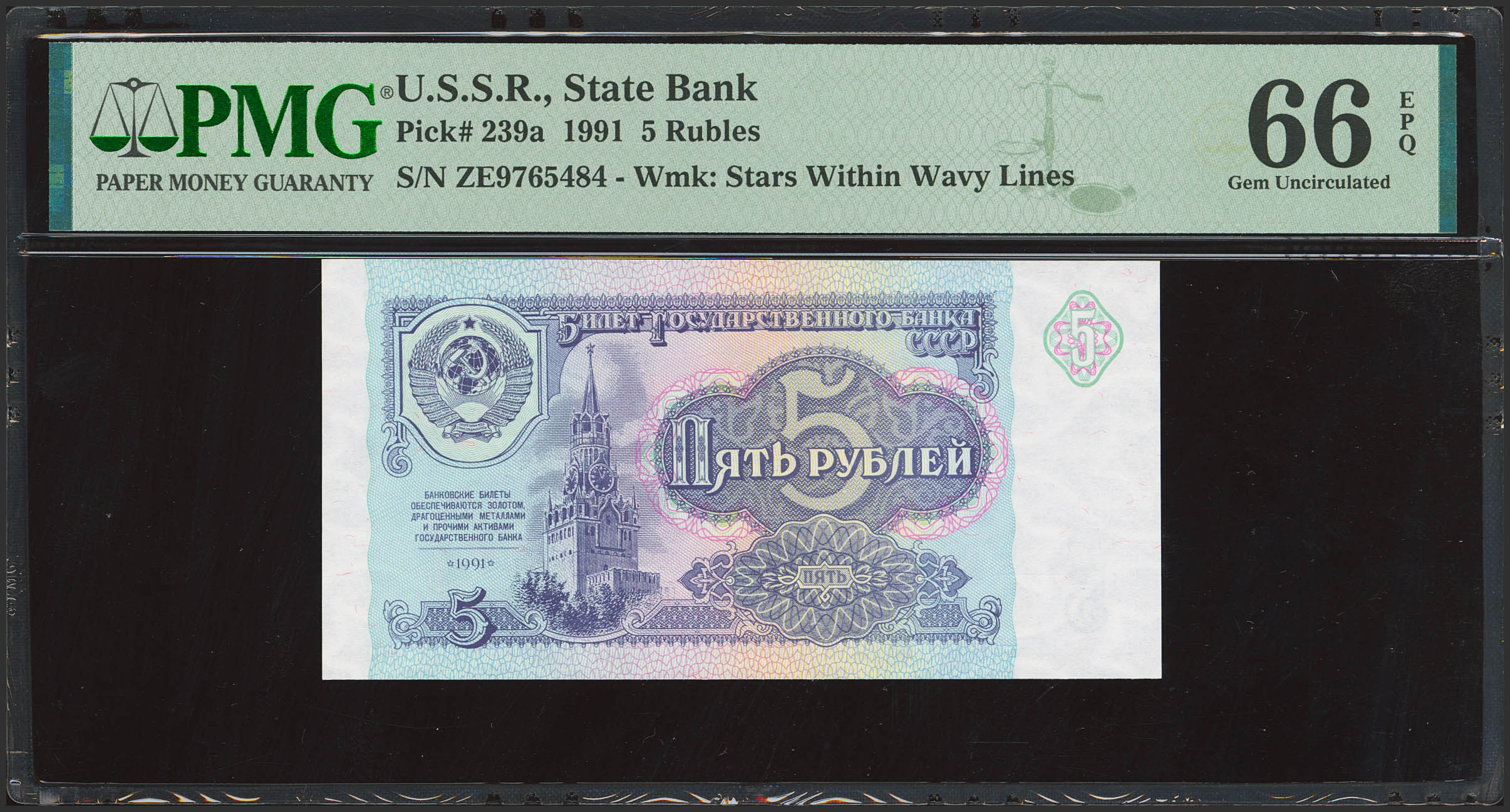 RUSSIA. 5 Rubles. 1991. (Pick: 239a). PMG66EPQ.