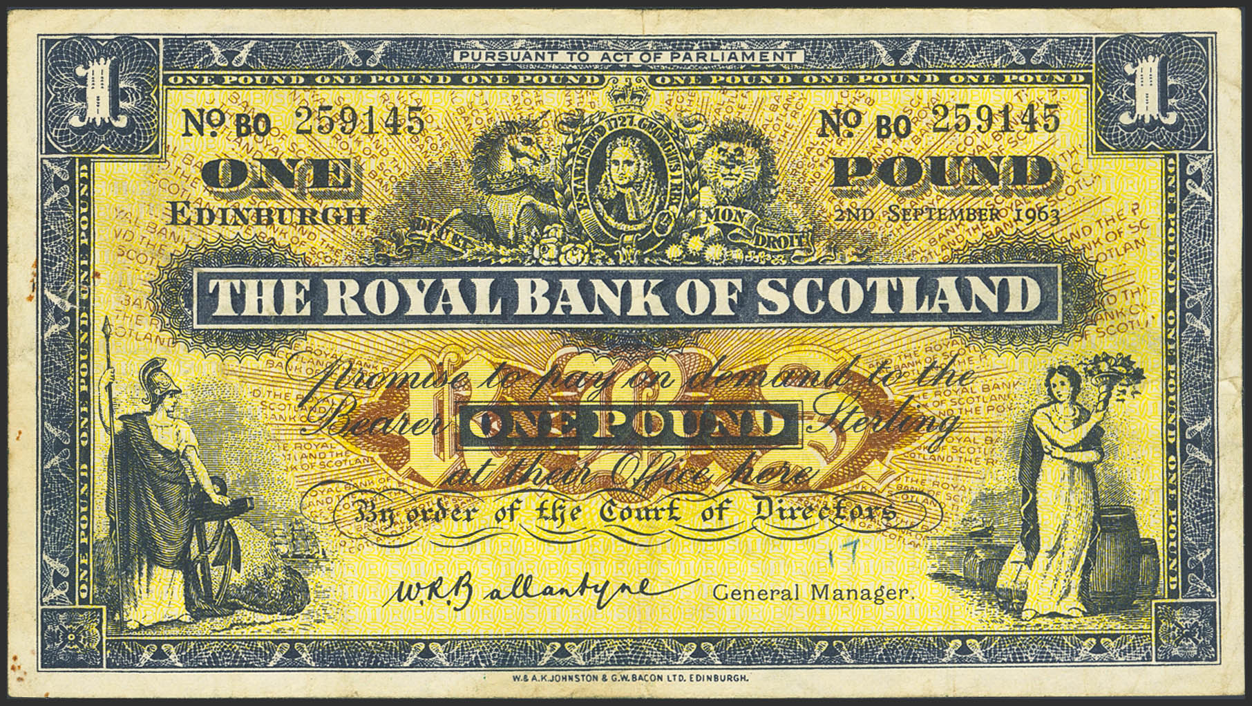 English UncirculatedOTLAND. 1 Pound. 2 September 1963. (Pick: 322b). Unusual. Very fine.