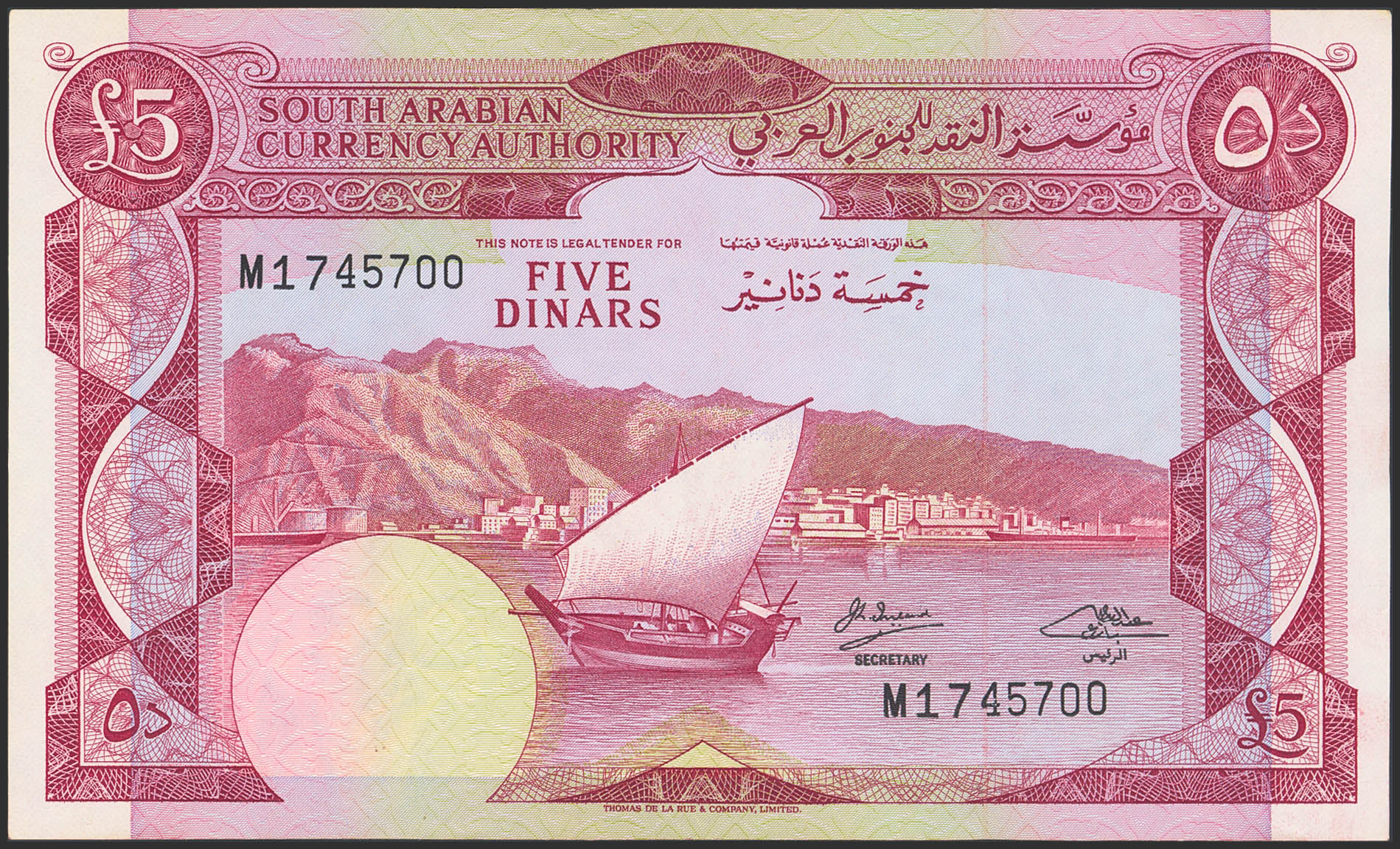 YEMEN. 5 Dinars. (1965ca). (Pick: 4b). Less than Uncirculated.