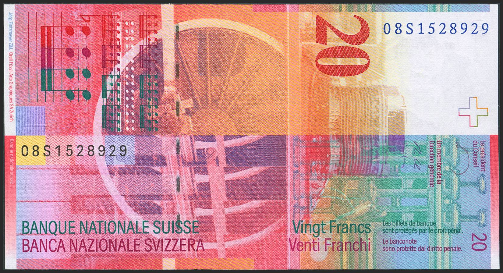 English SWITZERLAND. 20 Francs. (2003ca). (Pick: 69). Less than Uncirculated.