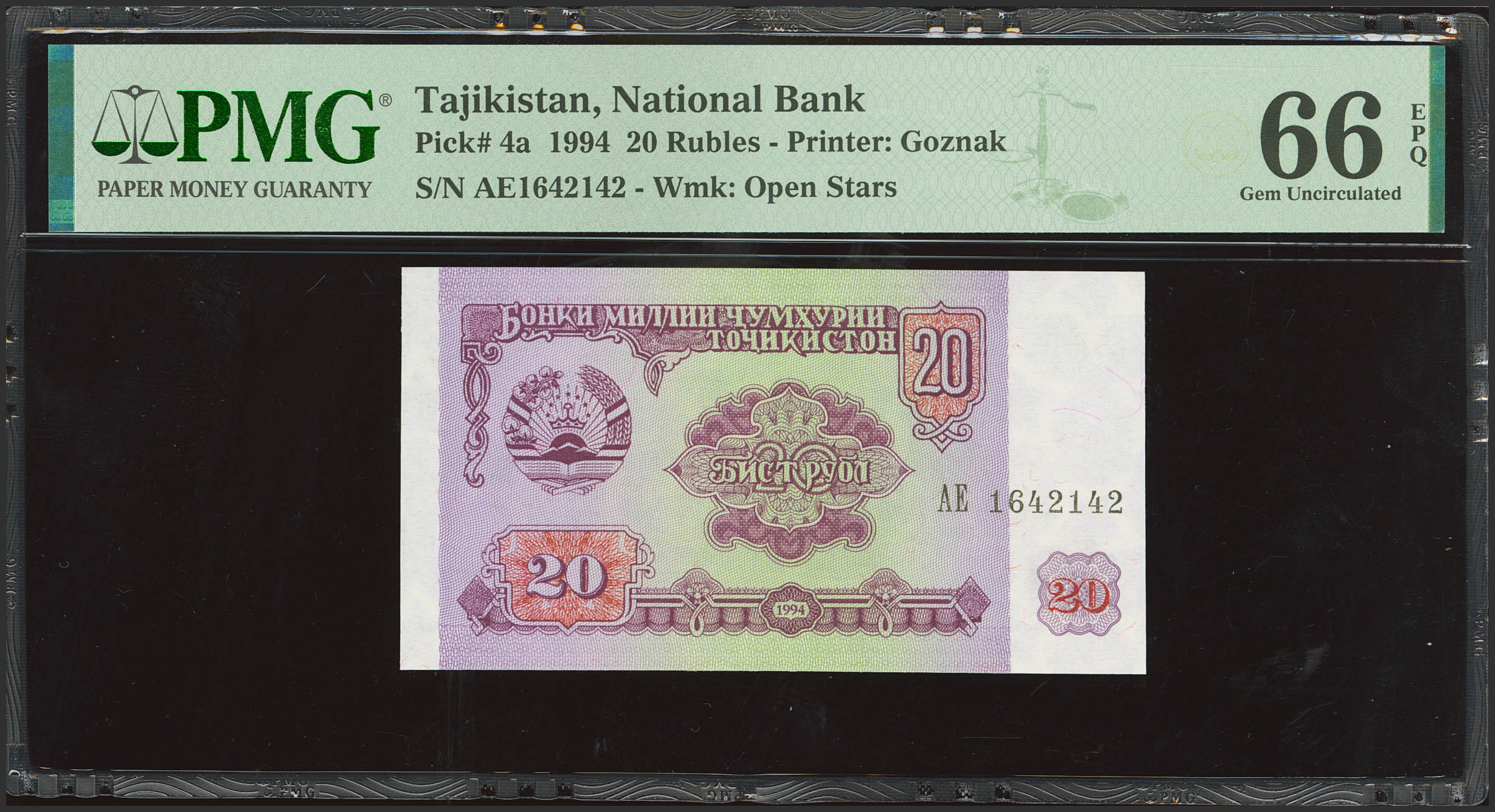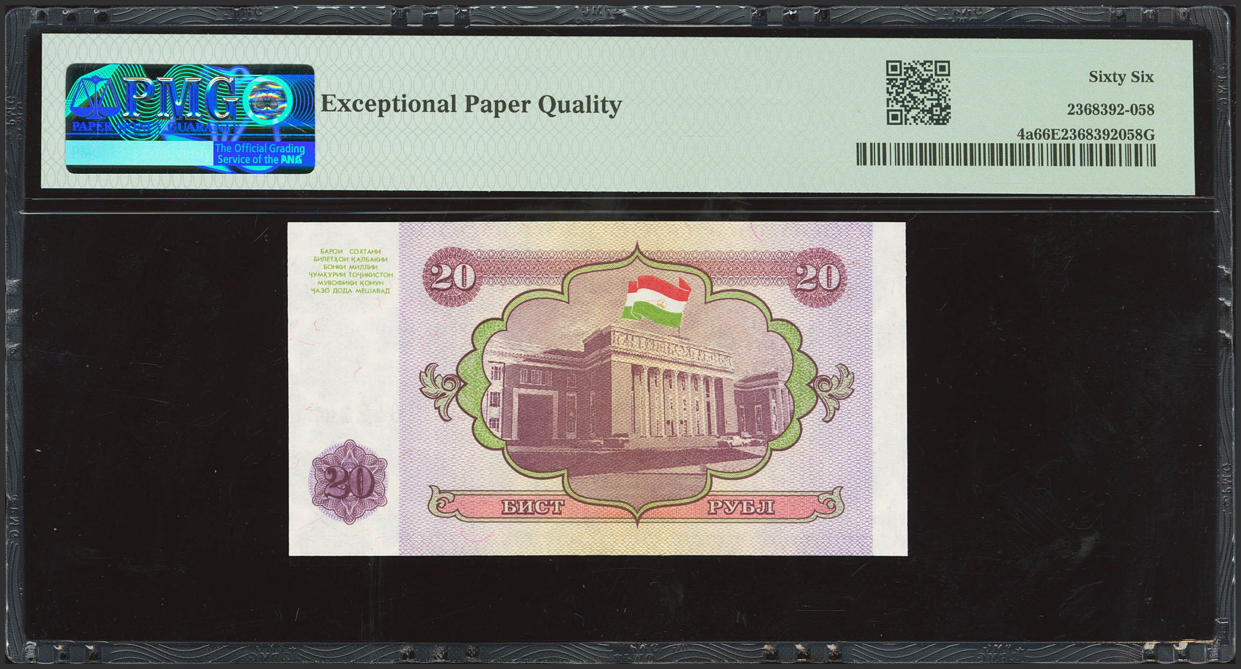 English TAJIKISTAN. 20 Rubles. 1994. (Pick: 4a). PMG66EPQ.