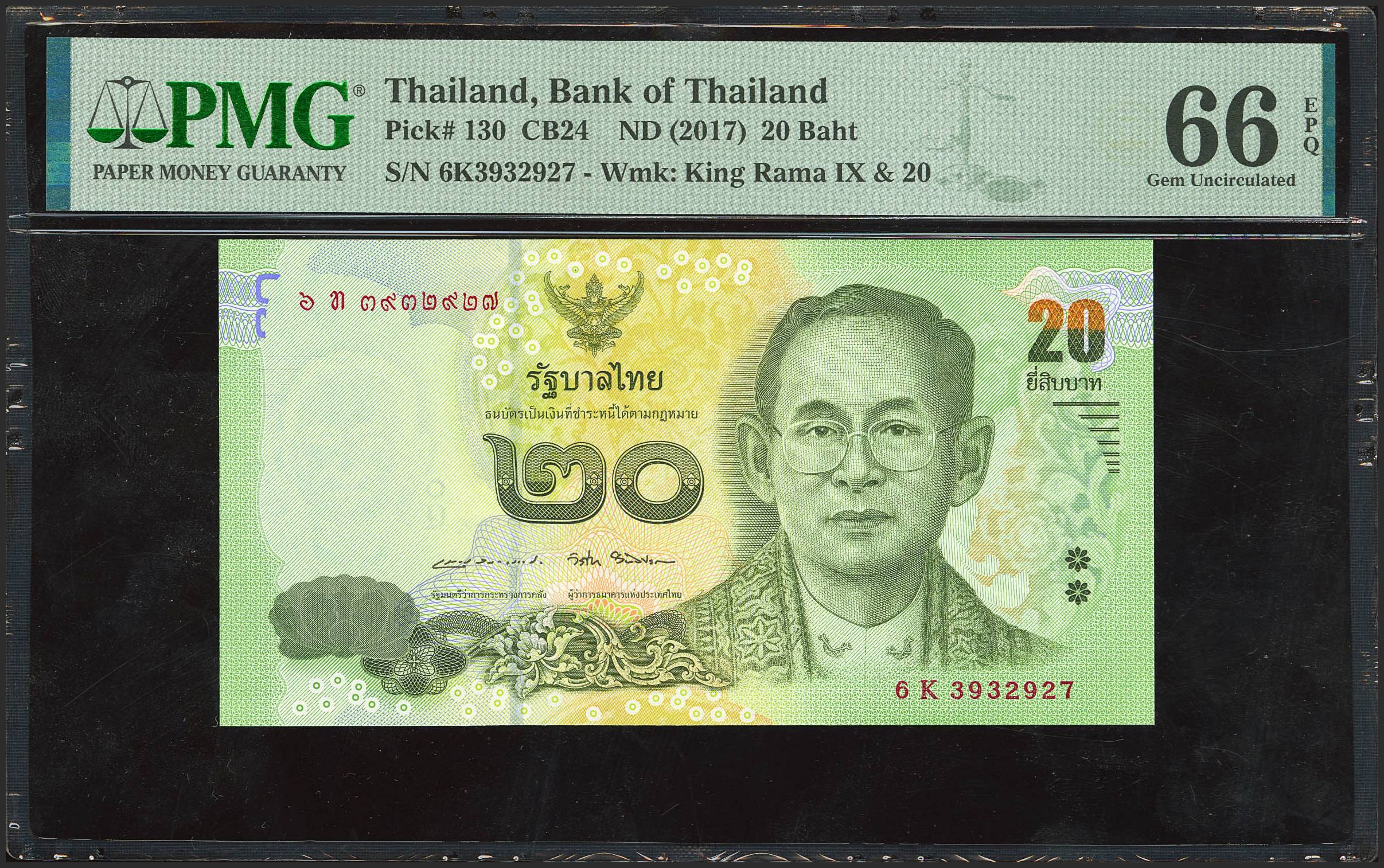 THAILAND. 20Bath. (2017ca). (Pick: 130). PMG66EPQ.
