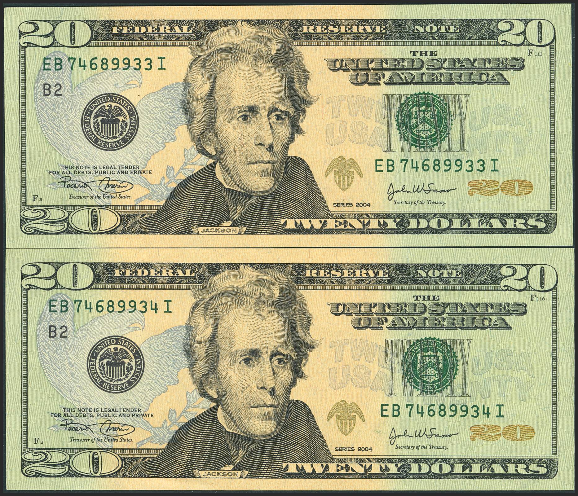 UNITED STATES. Correlative pair. 20 Dollars. 2004. (Pick: 521a). Less than Uncirculated.