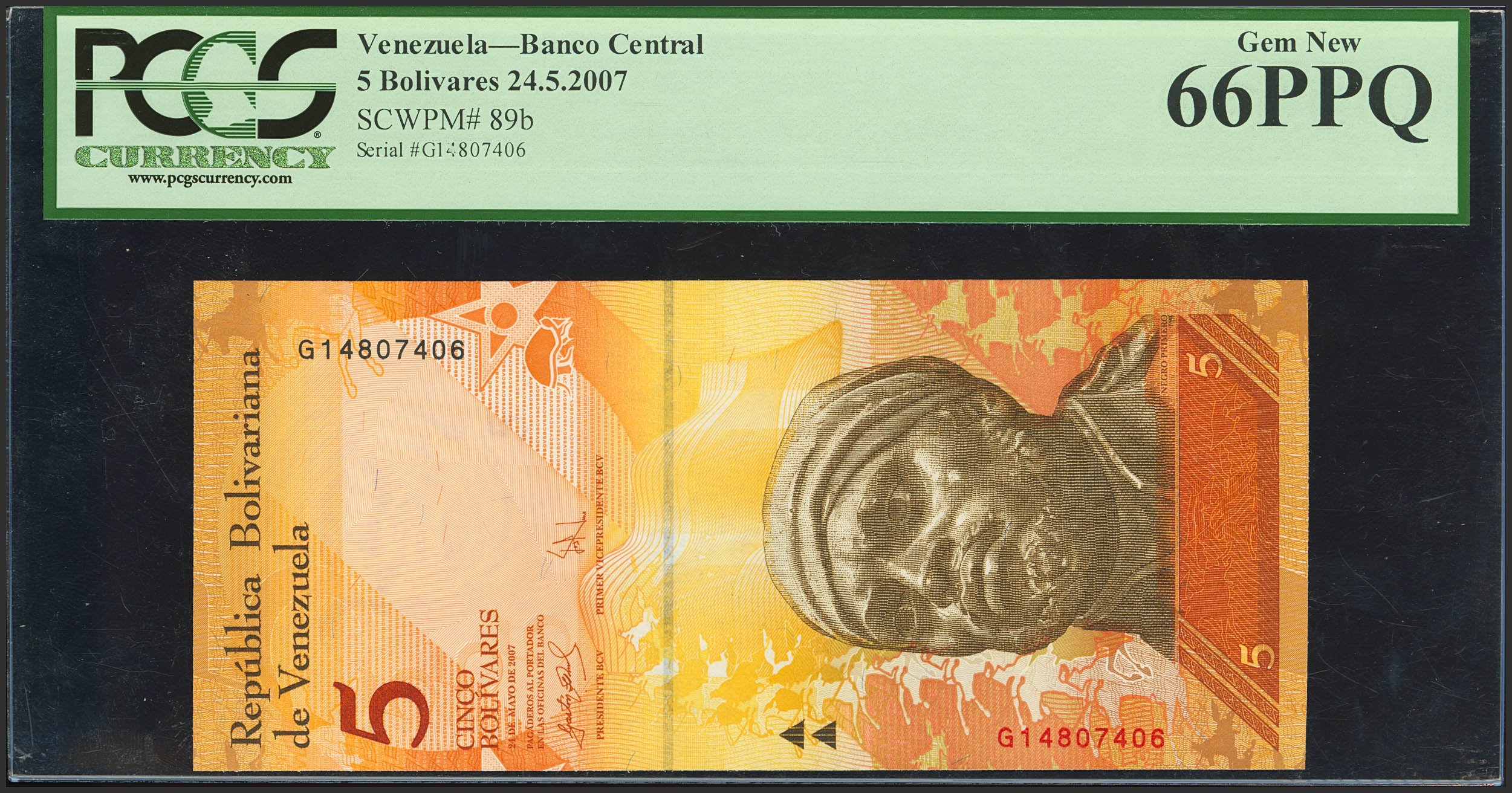 VENEZUELA. 5 Bolivars. May 24, 2007. (Pick: 89b). PCGS66PPQ.