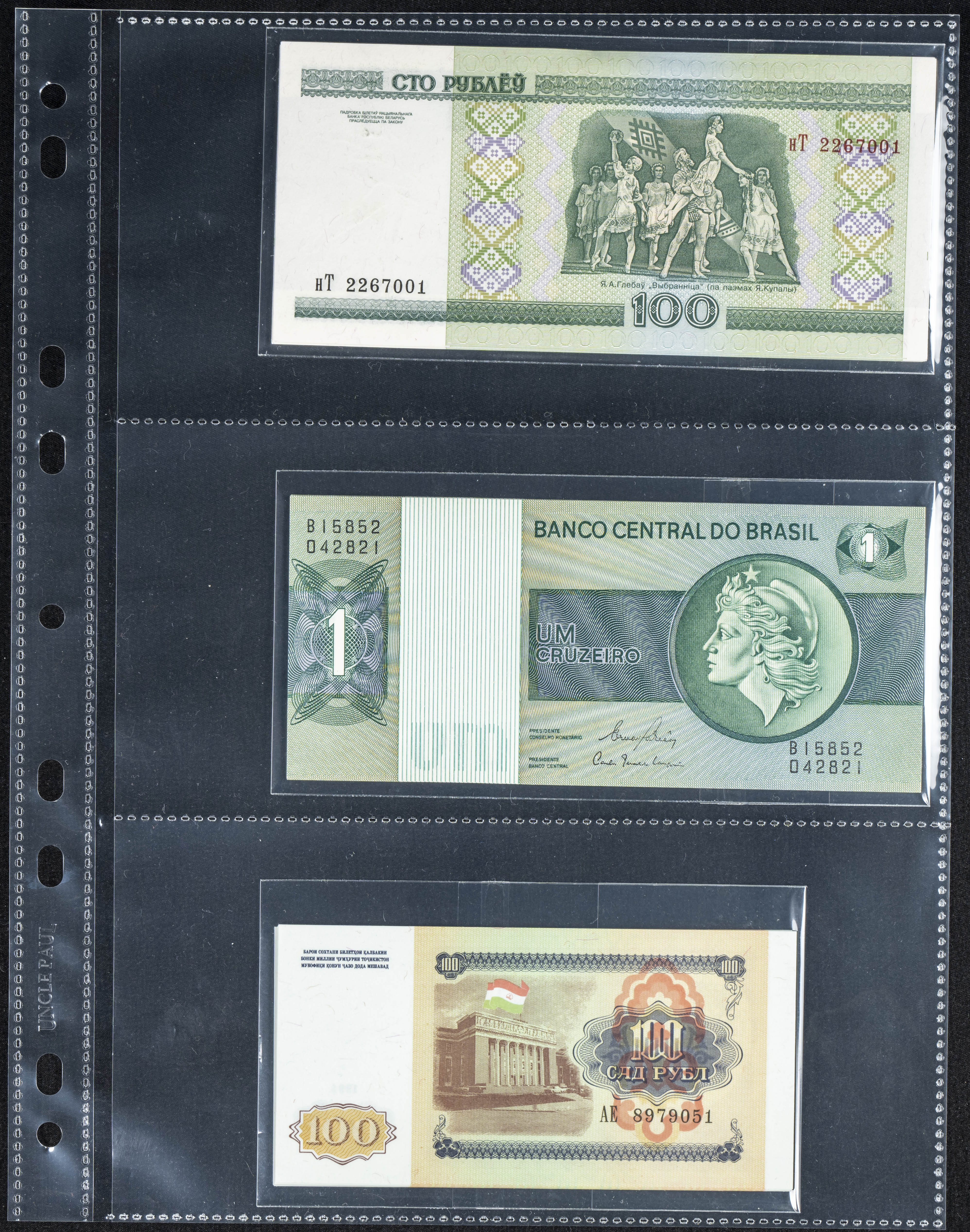 Set of more than 35 bundles of 10 banknotes each from worldwide of various issues, most of them nice qualities. TO EXAM.