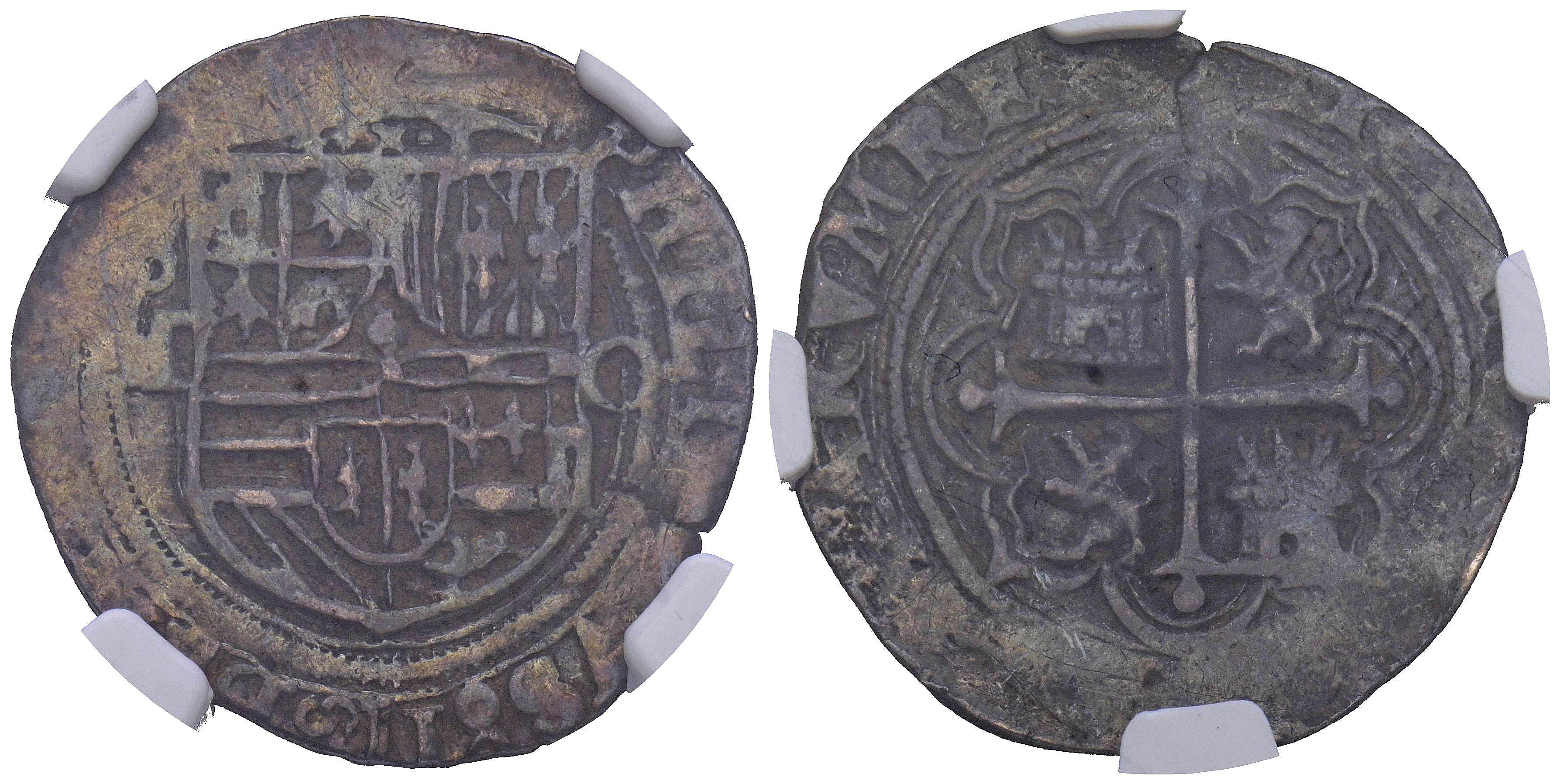 PHILIP II (1556-1598). 1 Royal. (Ar. 3.18g/23mm). S/D (between 1572-1589). México O. (Cal-2019-224). Encapsulated by NGC XF 45.
