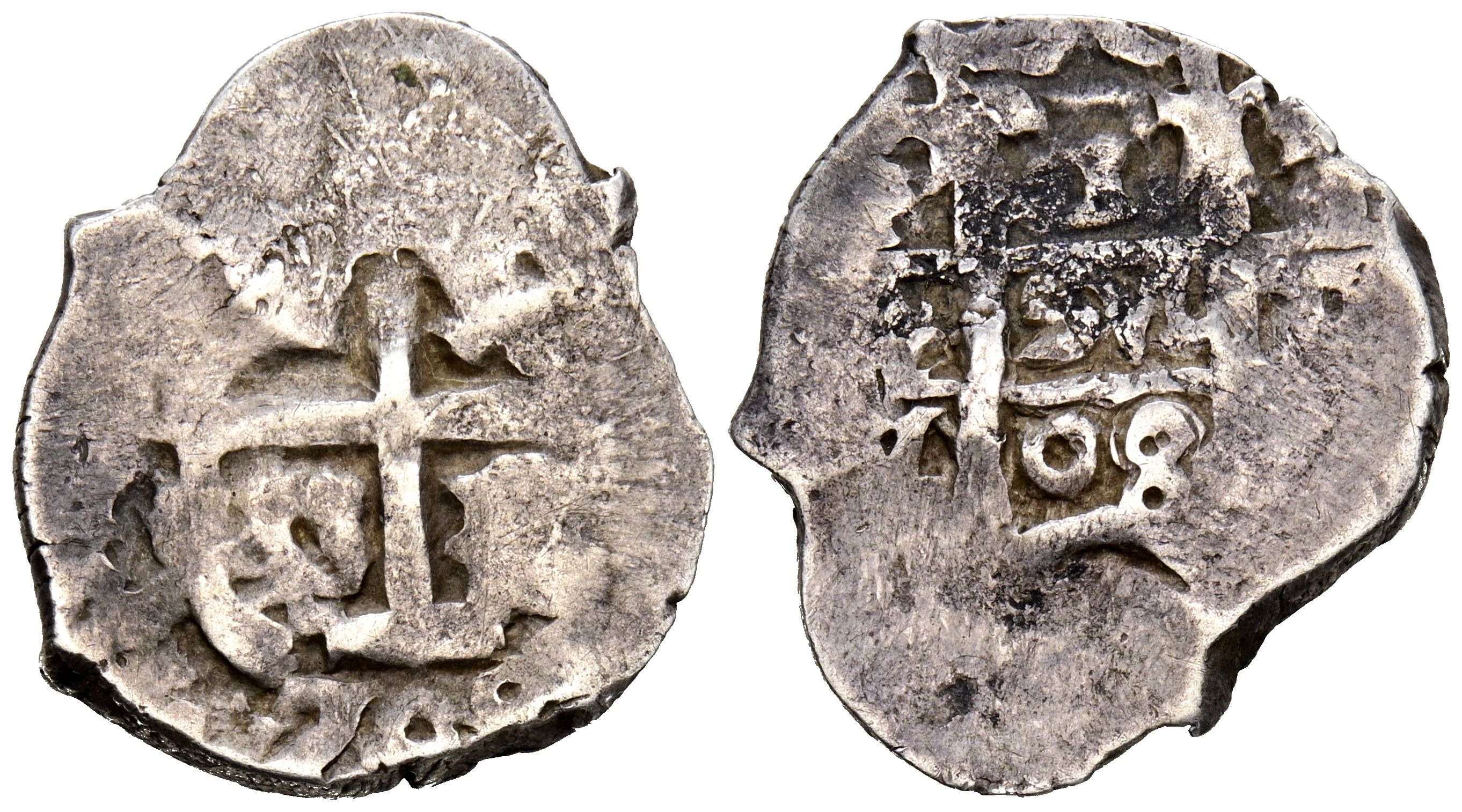 PHILIP V (1700-1746). 1 Real. (Ar. 3.29g/19mm). 1708. Potosí Y. (Cal.-2019-566). Good Fine. Double date visible.