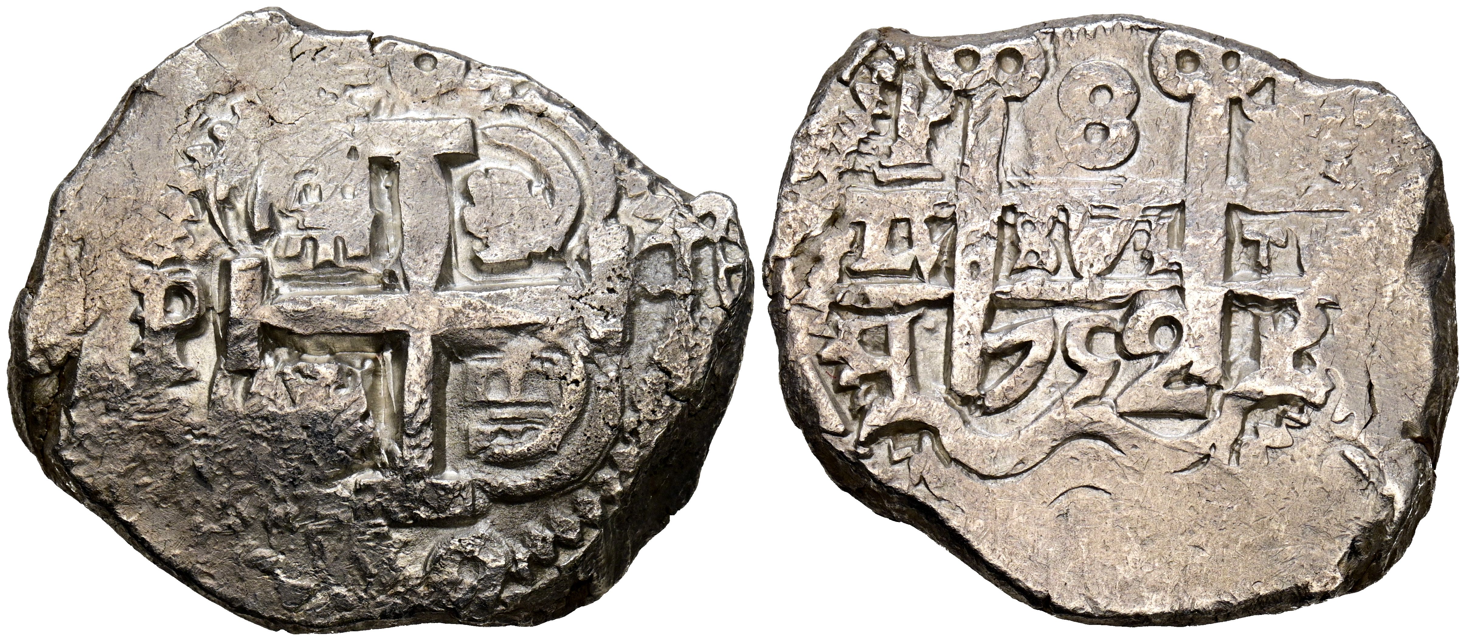 FERNANDO VI (1746-1759). 8 Reales. (Ar. 27.07g/34mm). 1752. Potosí q. (Cal. 2019-522). Double assayer and date, the one on the obverse partially. VF+. Interesting piece.
