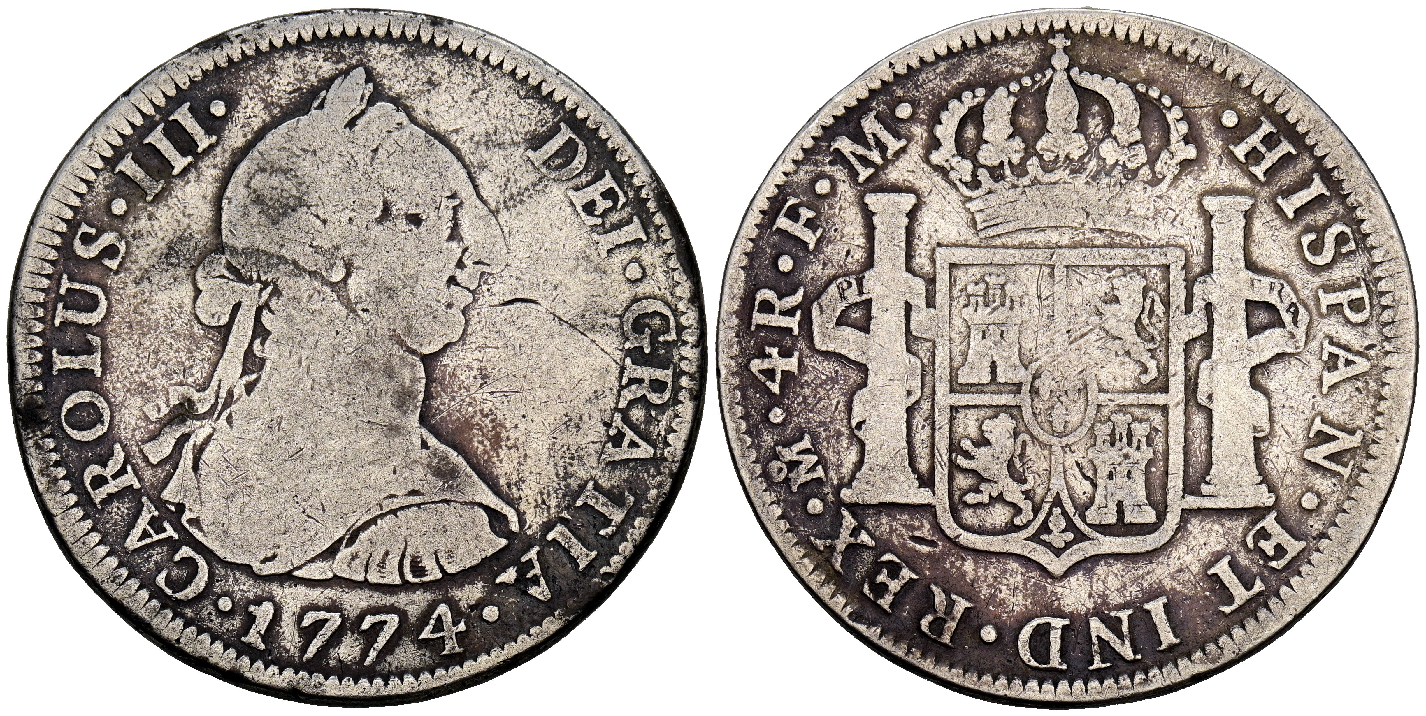 CHARLES III (1759-1788). 4 Reales. (Ar. 12.86g/35mm). 1774. Mexico FM. (Cal.-2019-887). Fine.