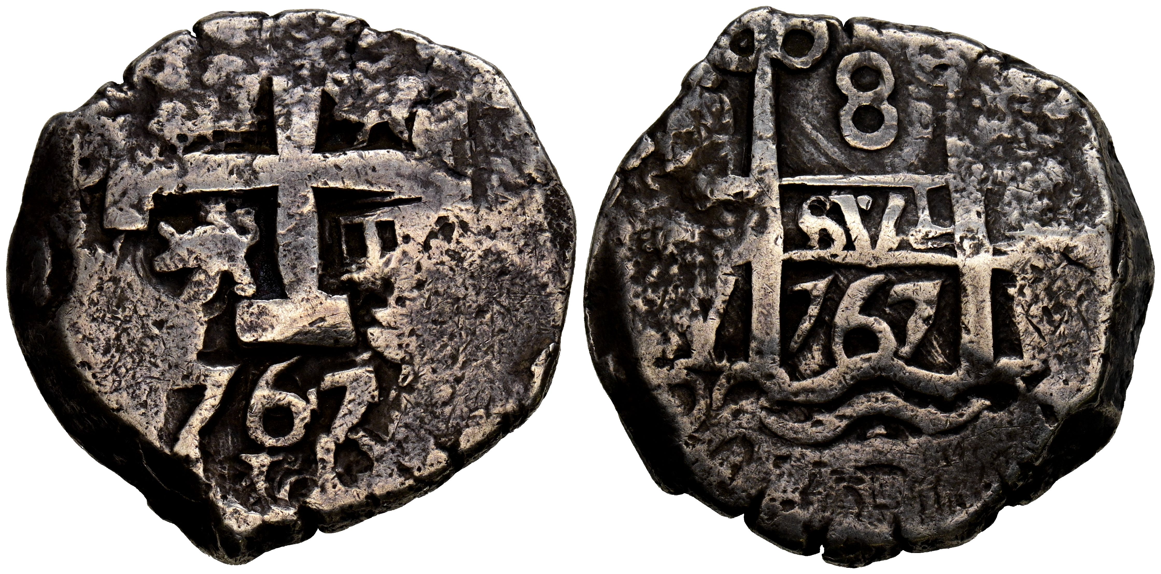 CHARLES III (1759-1788). 8 Reales. (Ar. 27.18g/32mm). 1767. Potosí VY. (Cal.-2019-1143). Double date. VF.