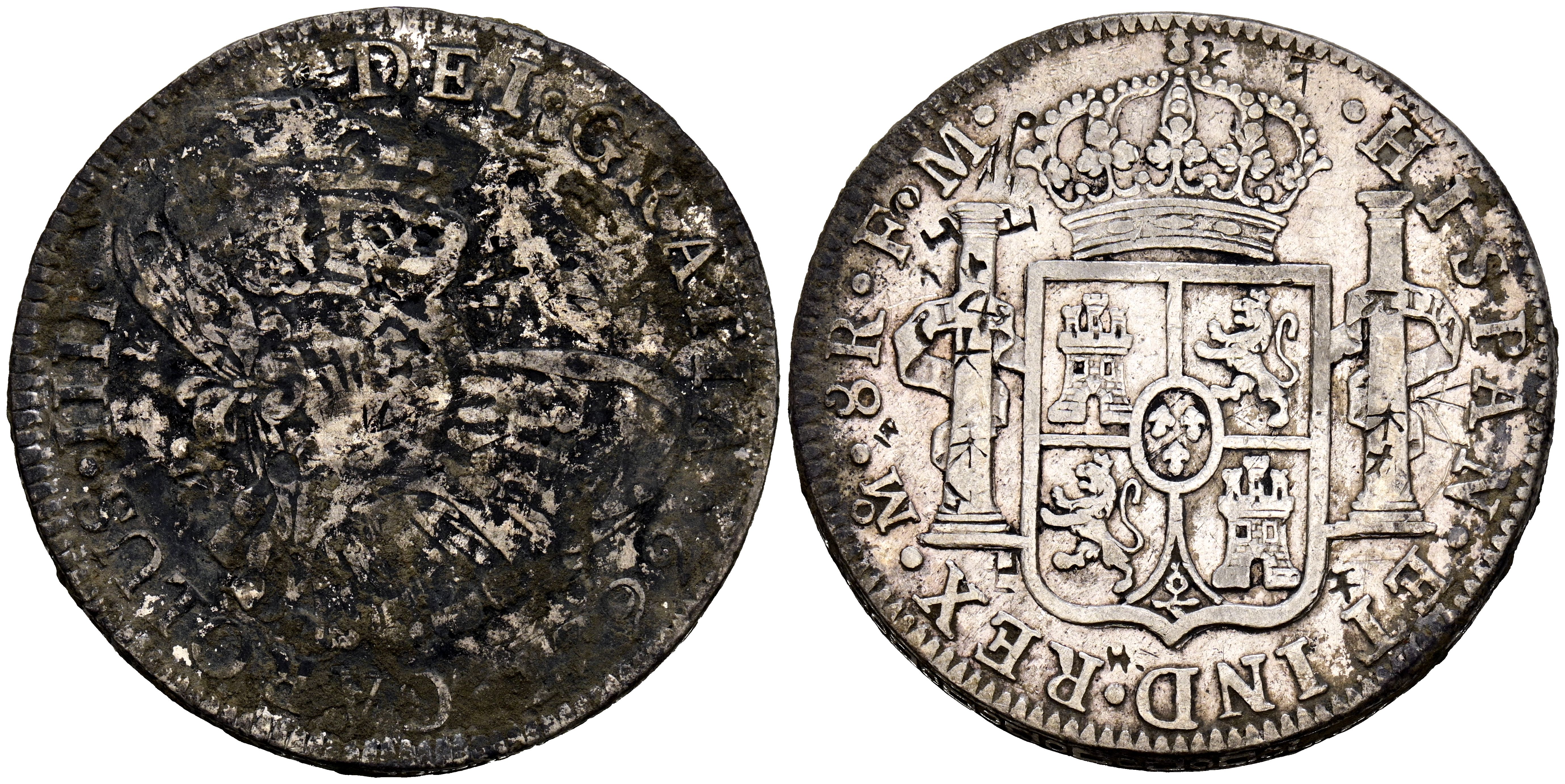 CHARLES IV (1788-1808). 8 Reales. (Ar. 26.81g/38mm). 1792. Mexico FM. (Cal. 2019-954). Good/VF-. Eastern counterstamps.