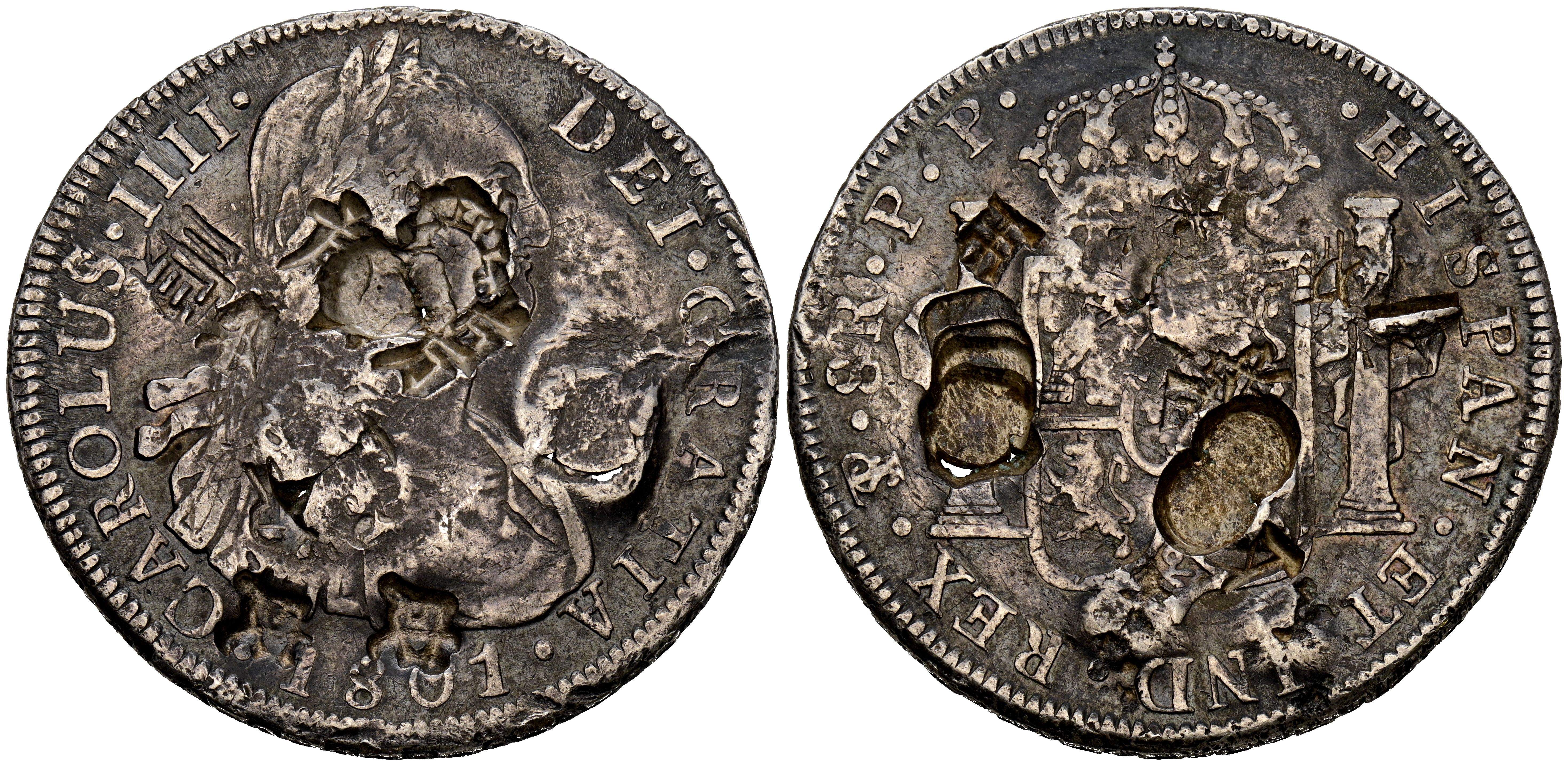CHARLES IV (1788-1808). 8 Reales. (Ar. 24.61g/41mm). 1801. Potosí PP. (Cal-2019-1005). Good. Deep counterstamps.
