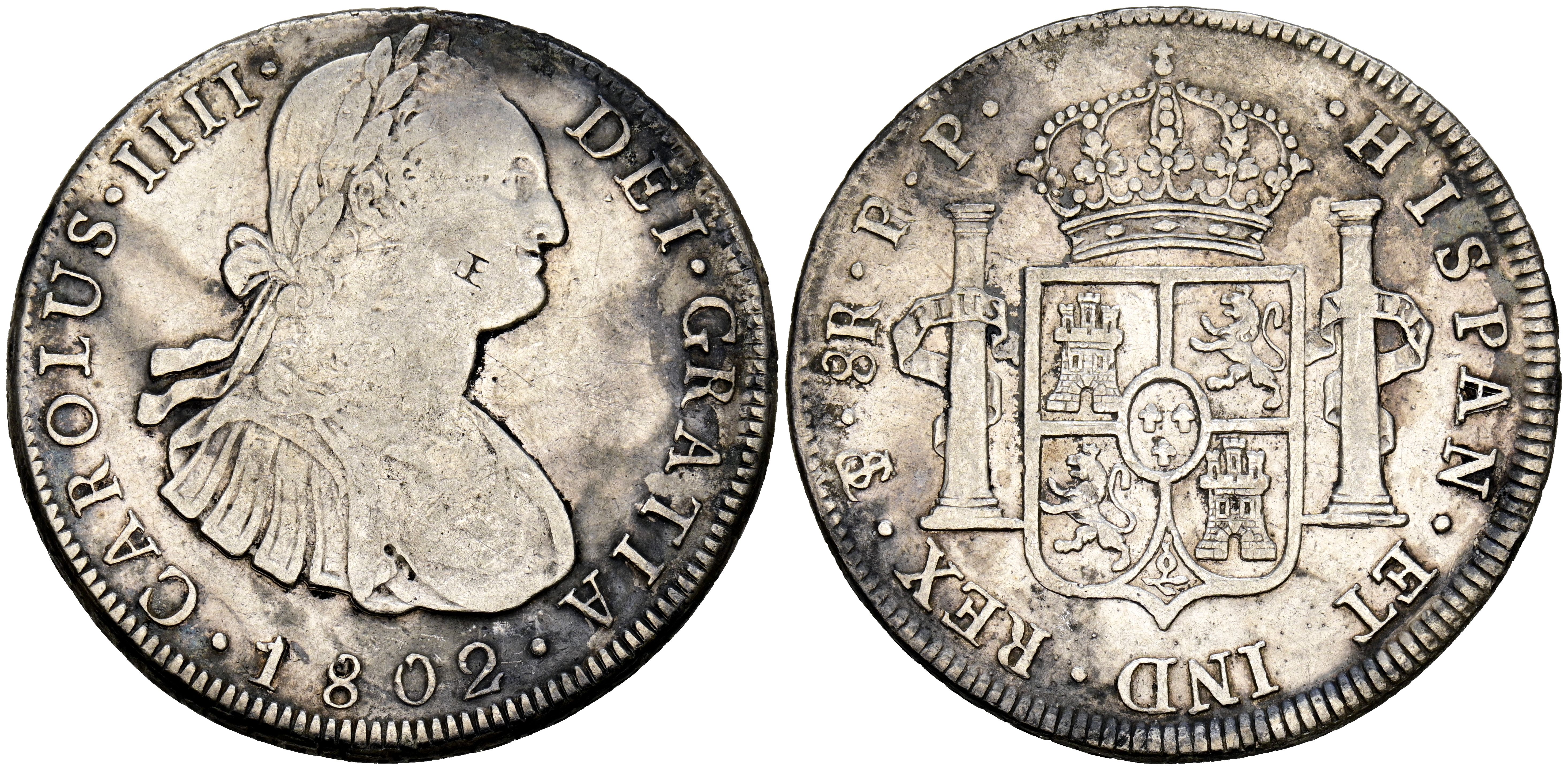 CHARLES IV (1788-1808). 8 Reales. (Ar. 27.04g/41mm). 1802. Potosí PP. (Cal-2019-1006). Very Fine.