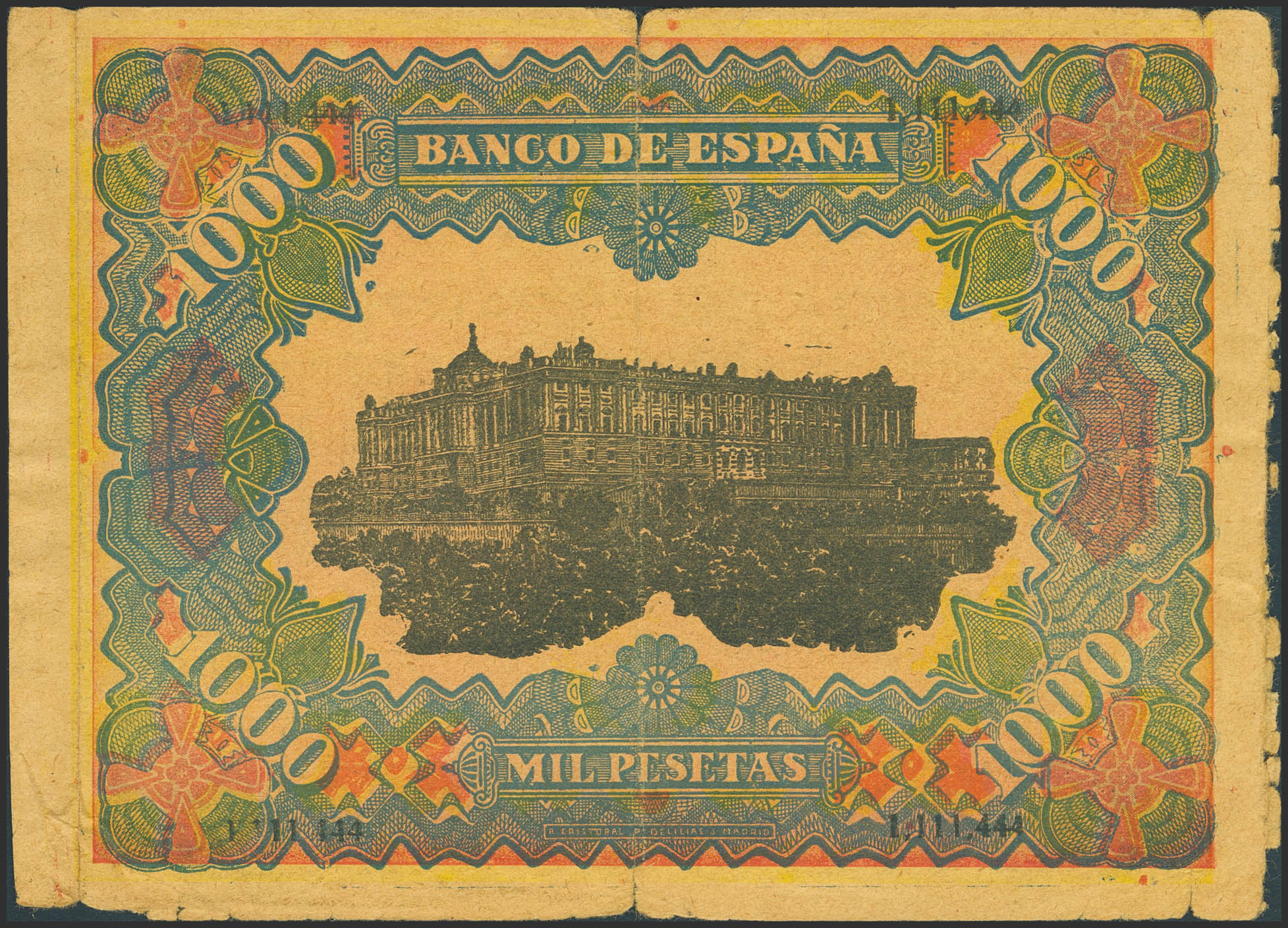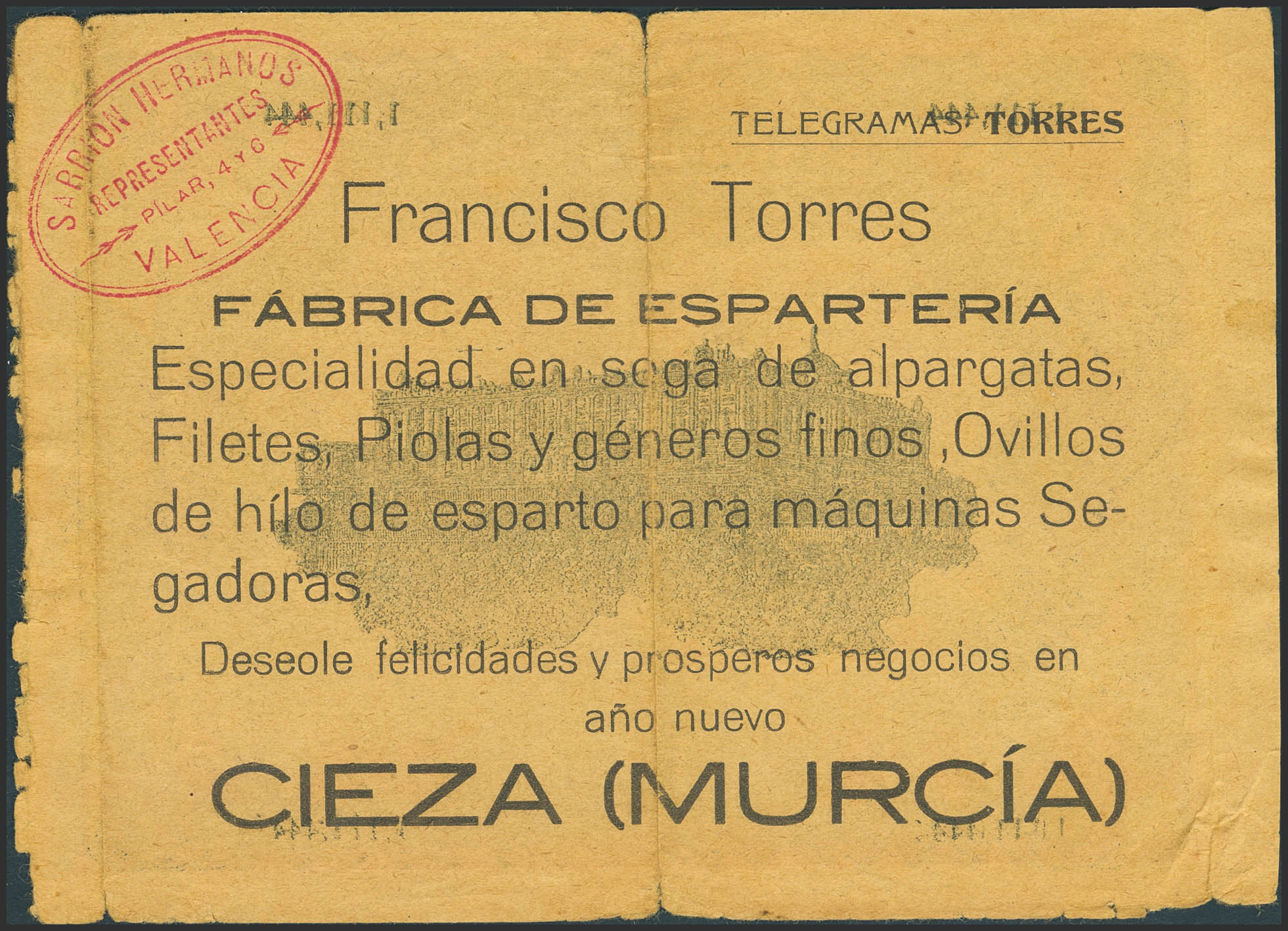 1000 Pesetas. 1907. Advertising banknote from a rope-making factory, numbered, located in Cieza (Murcia). Rare advertising banknote. Good Fine.