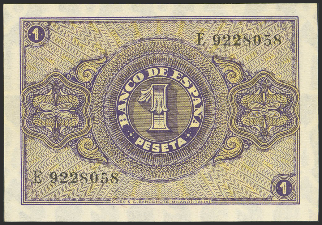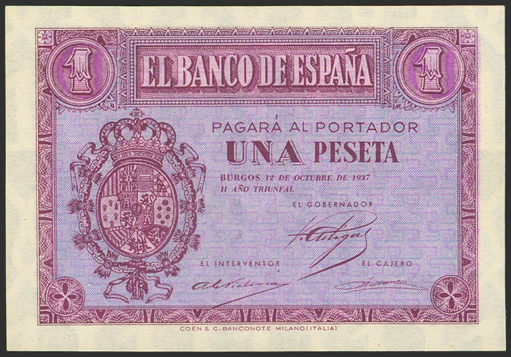 1 Peseta. October 12, 1937. Series E. (Edifil 2023: 425a). Original condition. Uncirculated.