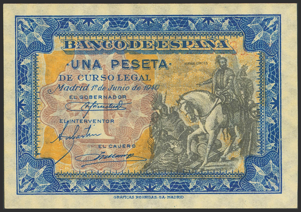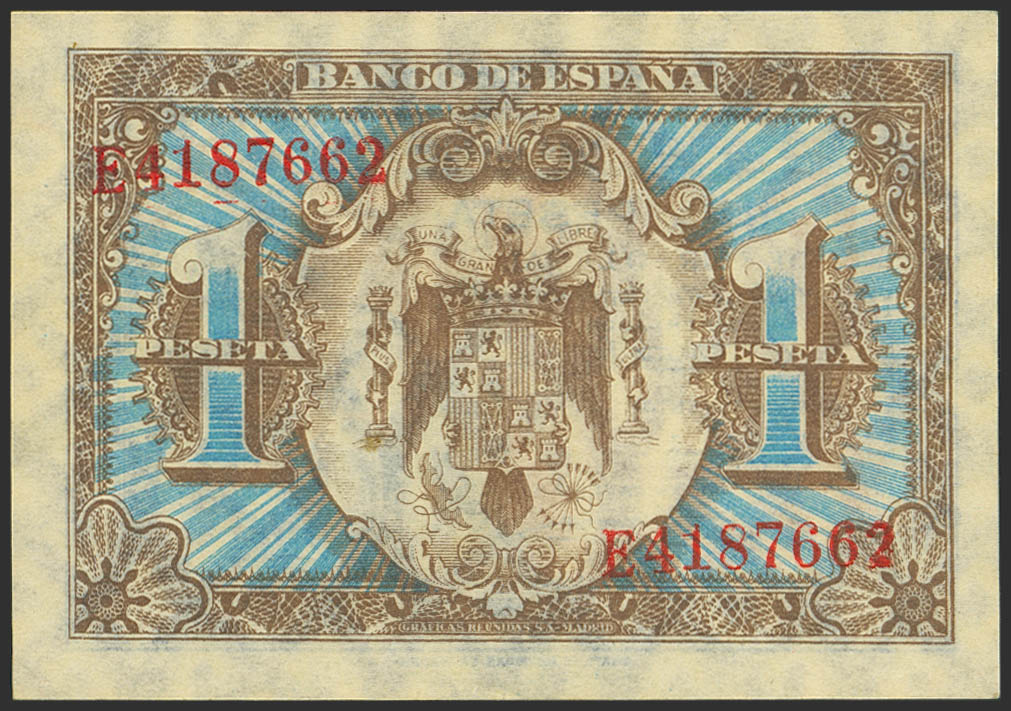 English 1 Peseta. June 1, 1940. Series E, last series issued. (Edifil 2023: 441b). Original condition. Uncirculated-.
