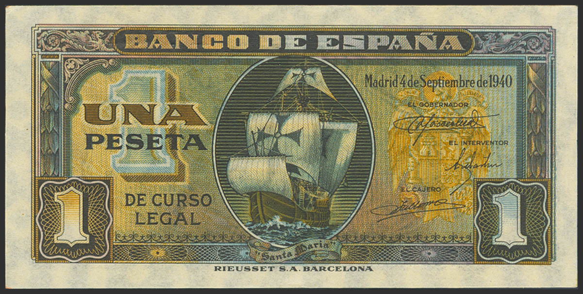 1 Peseta. September 4, 1940. Series A. (Edifil 2023: 442a). Original finish. Uncirculated-.