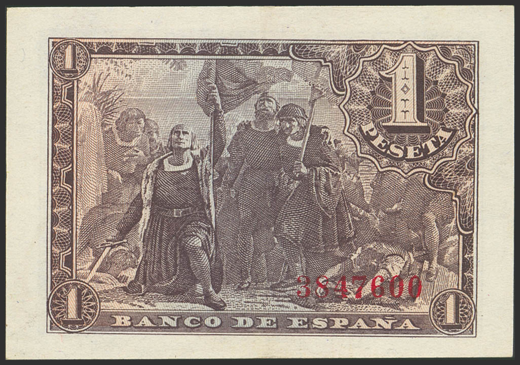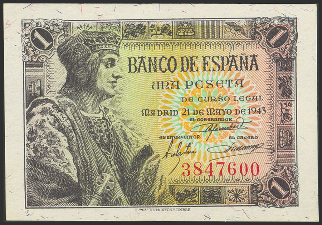 English 1 Peseta. May 21, 1943. No series. (Edifil 2023: 447). Retains much of its original finish. EF+++.