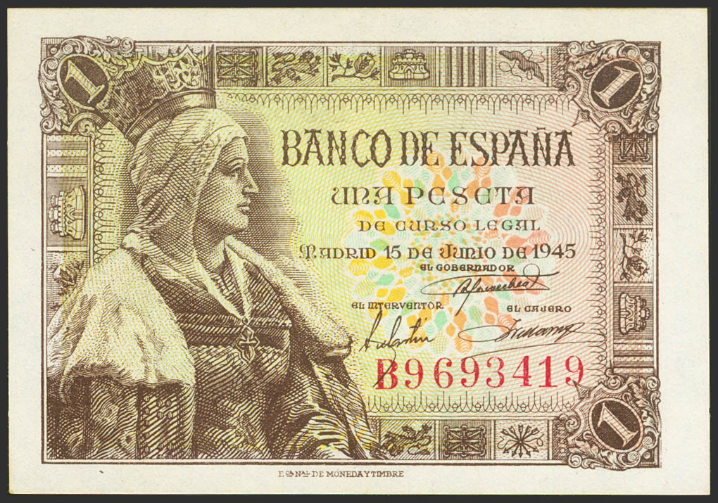 English 1 Peseta. June 15, 1945. Series B. (Edifil 2021: 448a). Original condition. Uncirculated.
