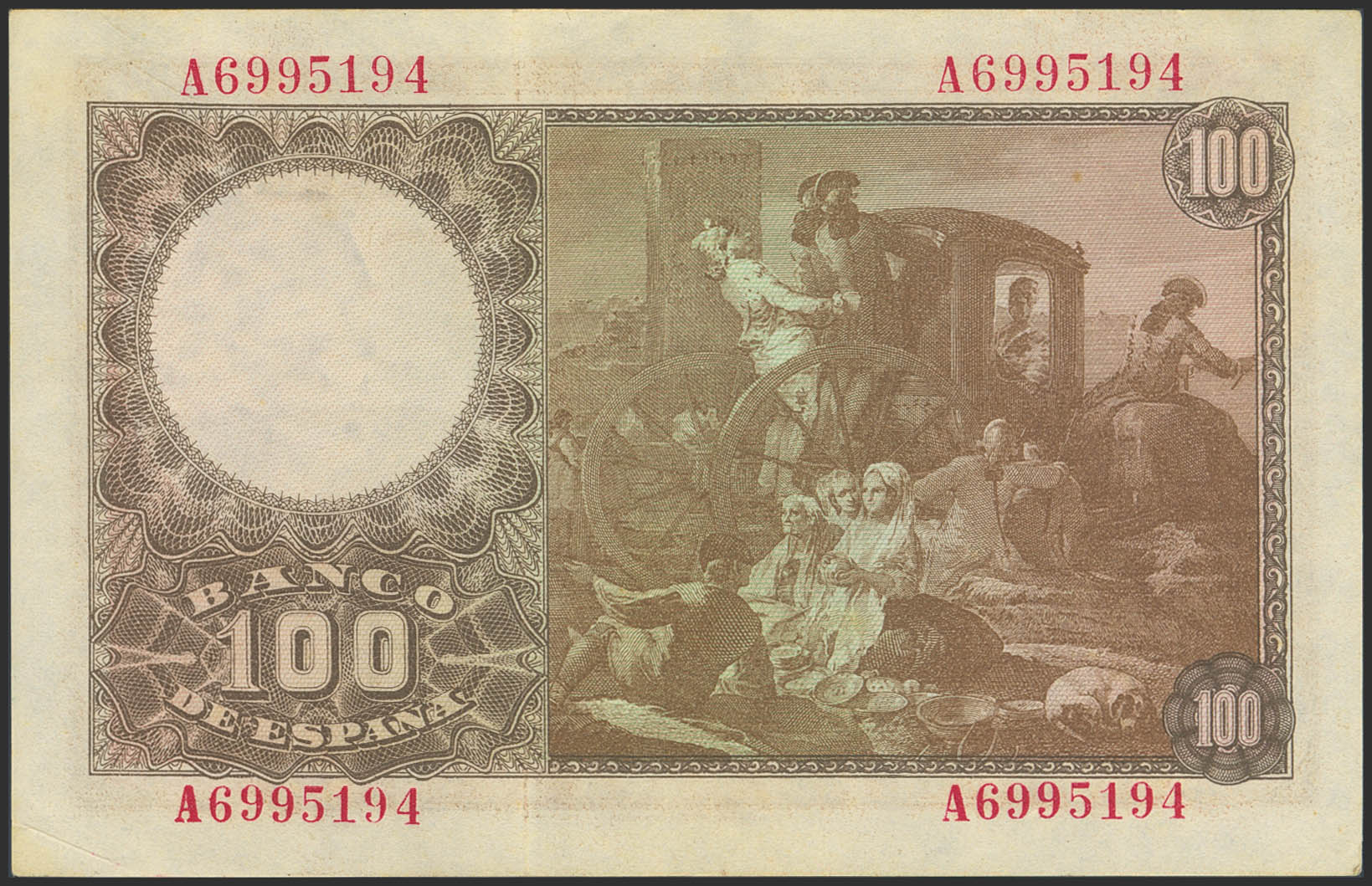 100 Pesetas. May 2, 1948. Series A. (Edifil 2023: 456a). VF+.