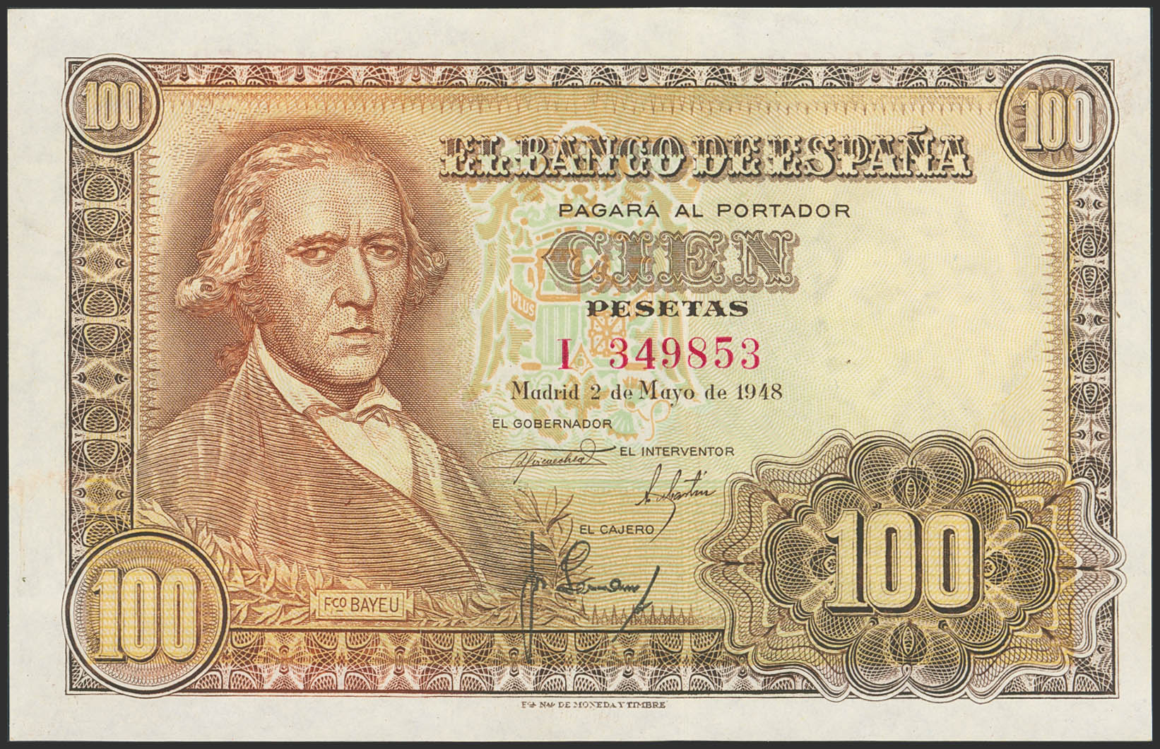 English 100 Pesetas. May 2, 1948. Series I, last series issued. (Edifil 2023: 456b). Original condition. EF+++.