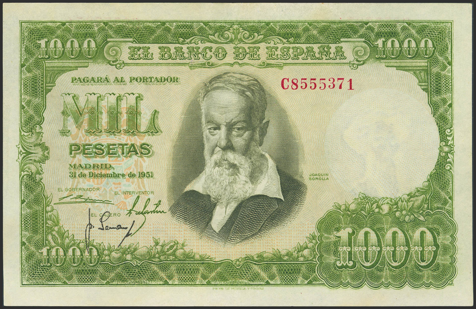 1000 Pesetas. December 31, 1951. Series C, last series issued. (Edifil 2023: 463b). EF.